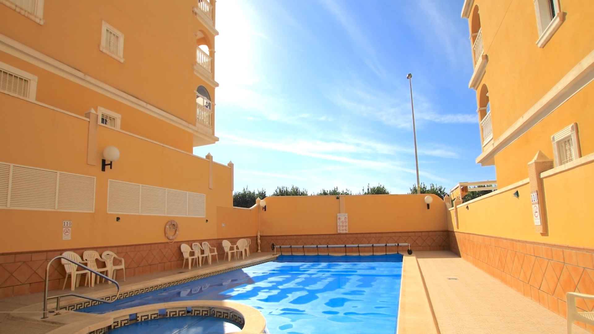 This Delightful, spacious, two bedroom, second floor apartment is located in the secure gated complex of Fontana III, Algorfa on the Costa Blanca South.The gated complex itself is very well looked after and maintained, with a working lift and stunning heated communal pool with plenty of seating areas. Situated just across the road from the sports centre, with the large municipal pool, padel & tennis courts, play area for the children, football pitches, GYM, Spanish restaurant and chiringuito... You can also walk to all the amenities that Algorfa village has to offer, such as, butchers, bakers, grocery shops, plenty of bars & restaurants, pharmacy, medical centre... and much more! It is a only a 5 minute drive to the stunning 5* La Finca Golf Course Resort and then a 15/20 drive to the beautiful sandy beaches of Guardamar del Segura