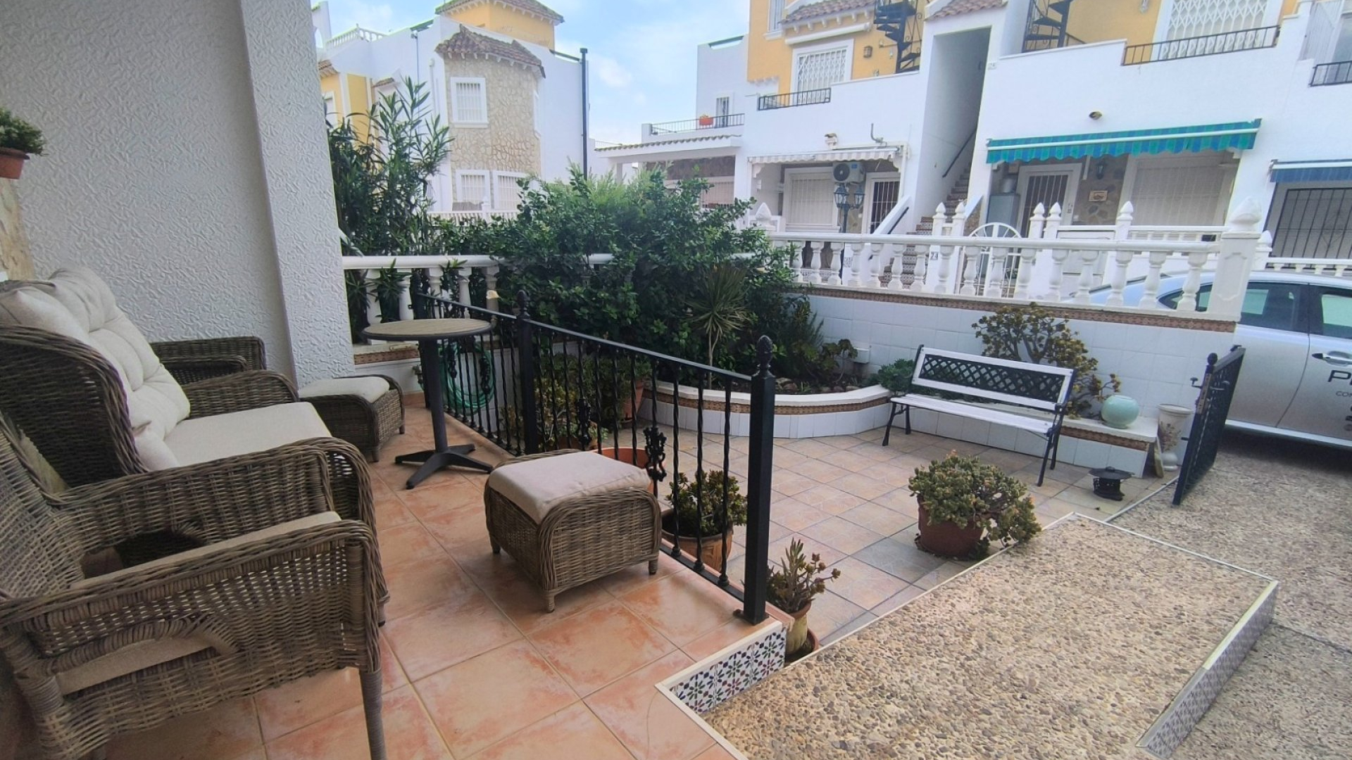 This Attractive and nicely maintained, three bedroom, two bathroom, semi-detached, end townhouse is located in the popular Montemar development of Algorfa on the Costa Blanca South. You can easily walk to the renowned 5-star La Finca Golf Resort in around 15 minutes, where you’ll find an 18-hole golf course, a hotel and spa complex, alongside a large commercial centre at the entrance with a choice of bars and eateries. The popular Algorfa hotel is also within walking distance where you can enjoy a coffee, a meal or even a show. The nearest stunning sandy beaches of Guardamar del Segura can be reached in a 20 minute drive.