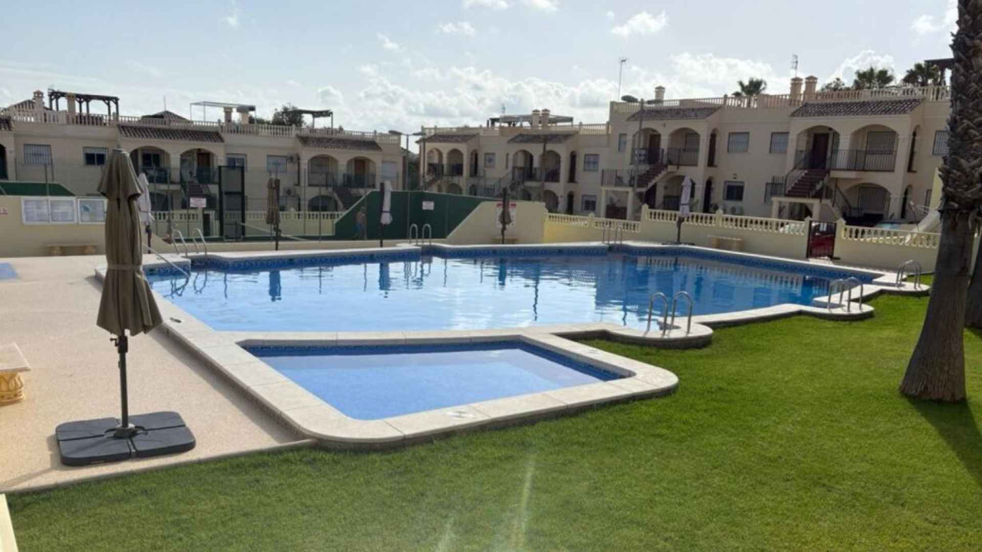 This delightful, well presented, two bedroom bungalow is located in Montemar, Algorfa on the Costa Blanca South. Situated on the highly desirable gated complex of Arco Mediterraneo in Montemar which boasts a wonderful communal swimming pool and tennis courts along with plenty of residents parking. The urb is situated just across the road from the Famous 5* La Finca Golf Course Resort, with its own commercial centre which offers a wide variety of bars, restaurants and amenities, a 5* Hotel with Spa and Gym, plus the Clubhouse with views over the stunning Golf course where you can enjoy a lovely meal and drink. You are also just a short walk to the Algorfa Hotel which hosts live music and entertainment on a regular basis, as well as a traditional bakery and small convenience store.