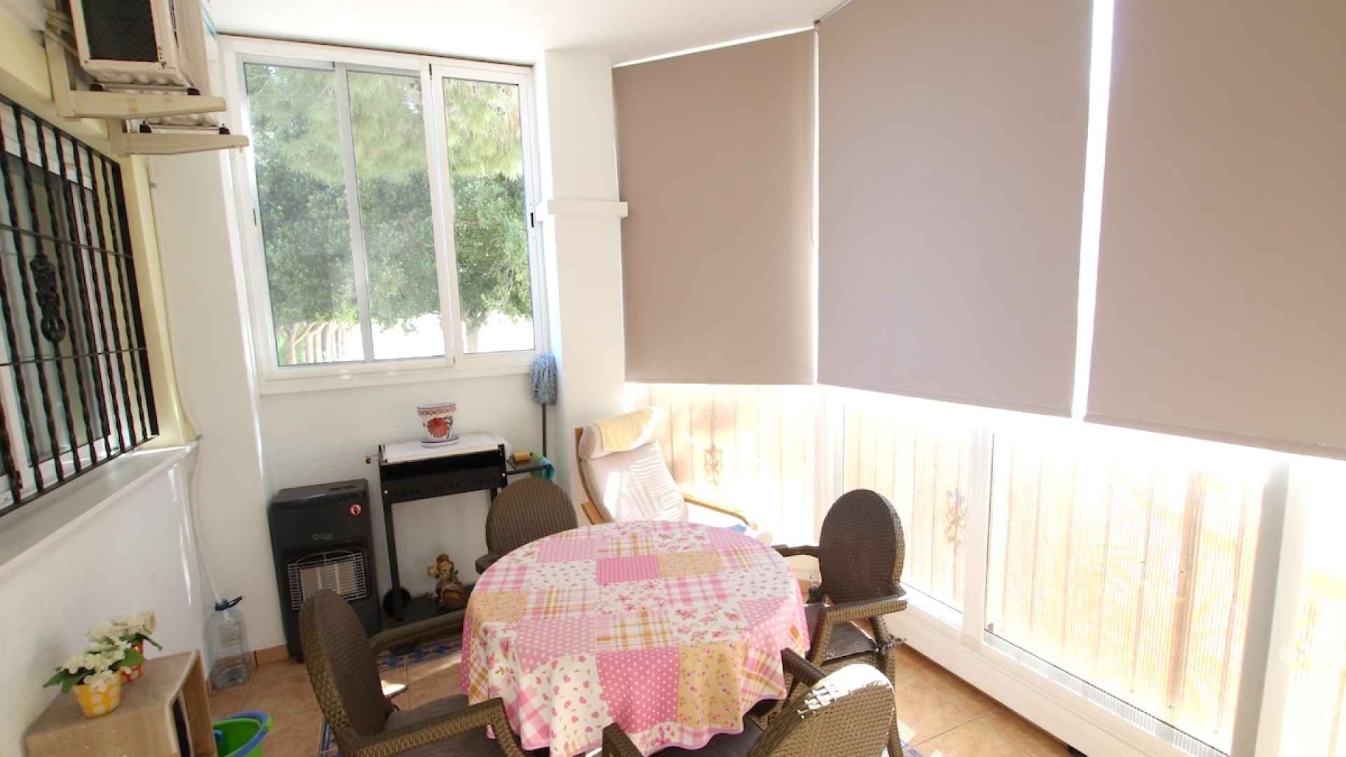 Step inside to find a bright and airy lounge-diner, complete with air conditioning for year-round comfort. The independent, well-equipped kitchen provides ample storage and workspace, ideal for preparing delicious Mediterranean meals. The apartment features a spacious main bedroom with fitted wardrobes, a comfortable double guest bedroom also with fitted wardrobes plus a good-size family bathroom with a walk-in shower.