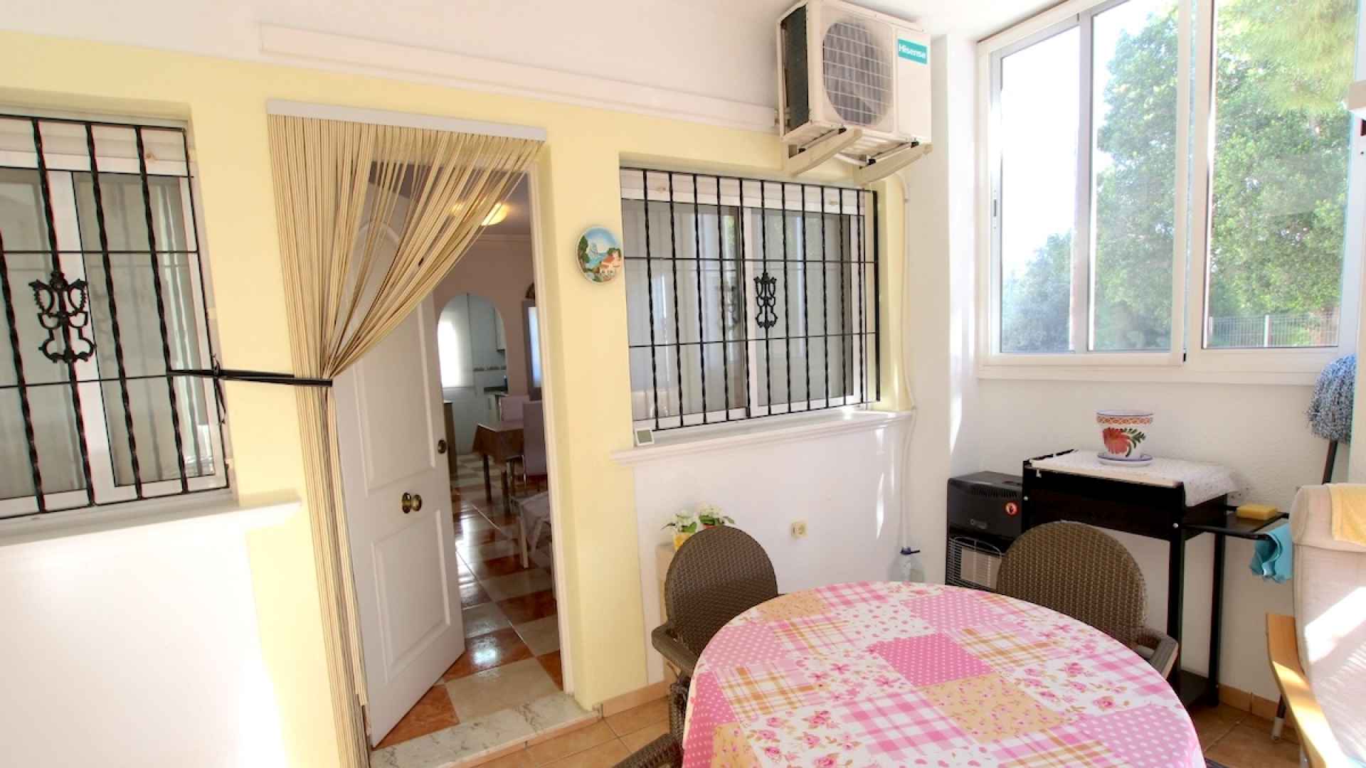 From the lounge, you have access to a generous glazed sun terrace, the perfect spot to unwind with friends or enjoy a morning coffee. With space for 4–6 people, this inviting terrace extends the living area and captures the relaxed Spanish lifestyle.