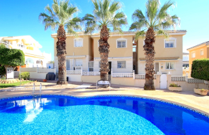 This Beautifully presented, Spacious, three bedroom, two bathroom link-detached villa is located in the popular residential area of Monte Azul, Benijofar on the Costa Blanca South. The property makes up part of the lovely Victoria development, an established multi-national development which boasts a lovely communal swimming pool and plenty of green areas. The property is situated just outside the towns of Benijofar and Ciudad Quesada, both reachable within a couple of minutes drive, where you can find all the amenities and facilities you could need. On the urb itself is a local bar, and a restaurant, whilst the blue flag beaches of Guardamar are less than a 15 minute drive away. For the keen golfer there are several fabulous golf courses nearby including; La Finca, La Marquesa, Vistabella and Las Colinas.