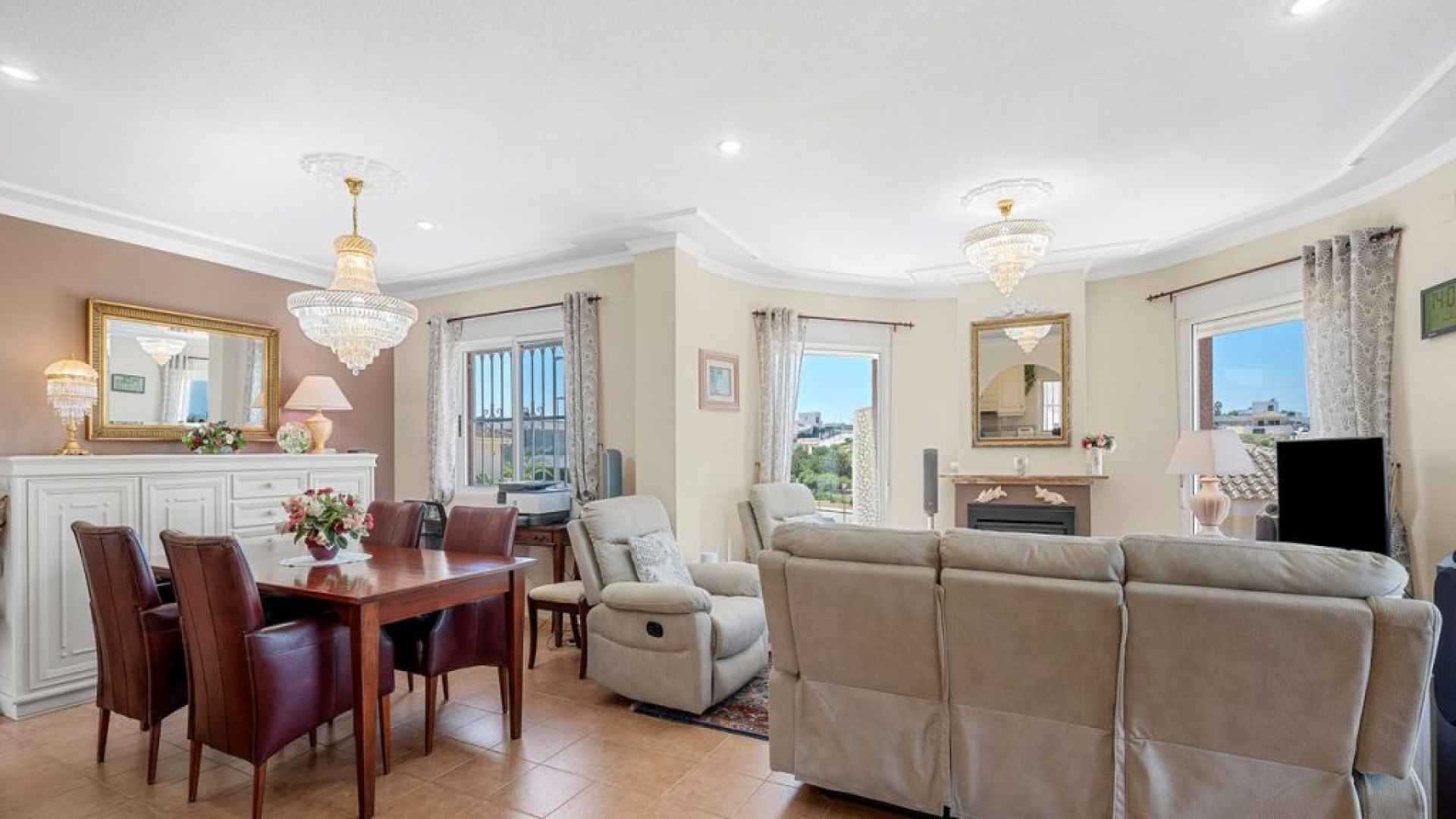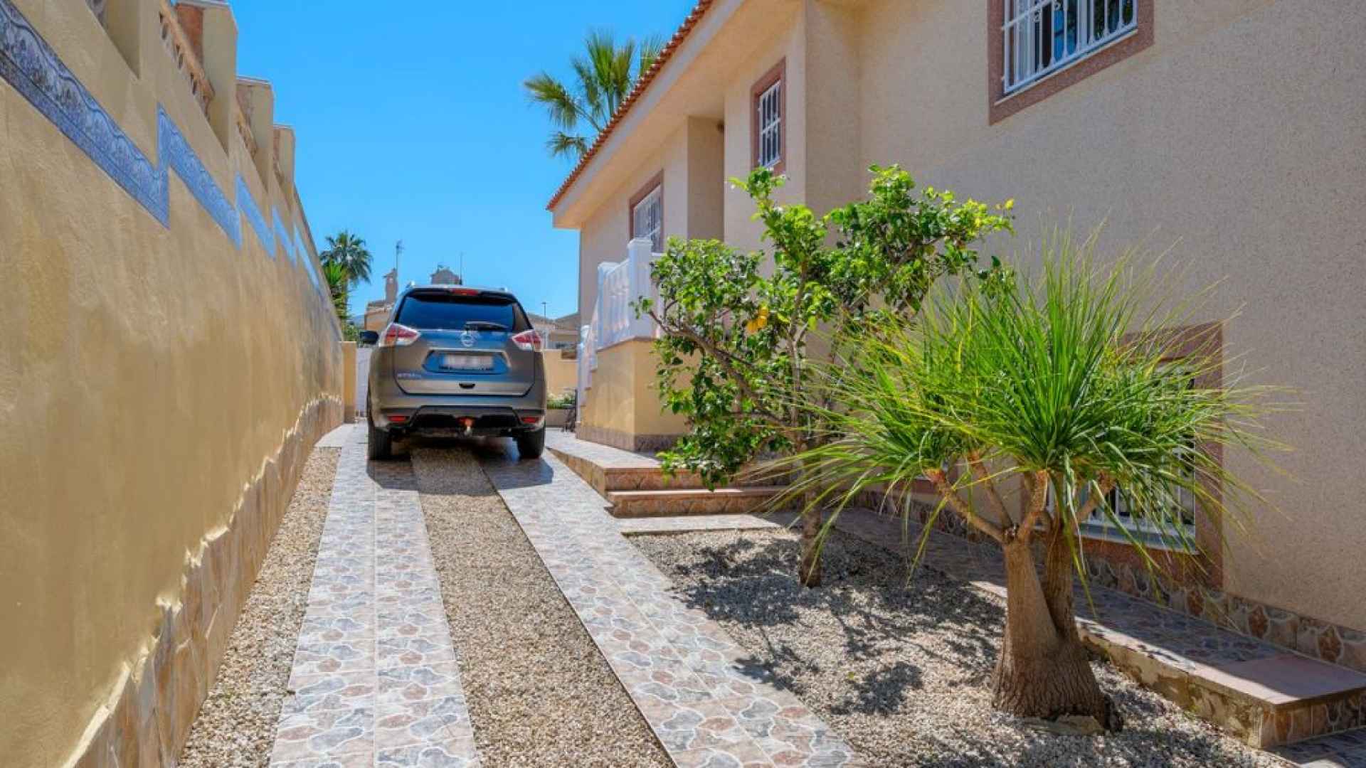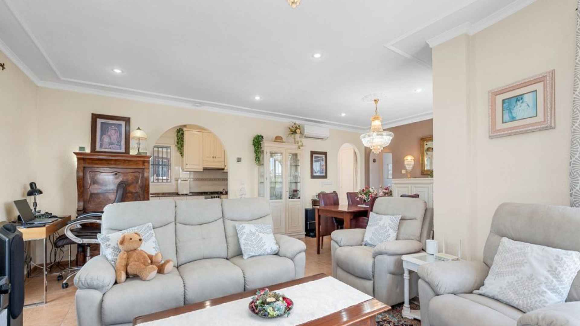This Attractive and Immaculately Presented, five bedroom, three bathroom detached villa is located on the popular urbanisation of Benimar, Rojales on the Costa Blanca South. Benimar is a very sought-after residential area and plays host to an array of nationalities. At the entrance there are two large commercial centres boasting a great choice of bars, restaurants, shops, and even a Veterinary hospital. There is also a large park and recreational area where you will find a lake, playground, seating areas, pedestrian and bicycle paths plus a woodland and BBQ area along with a new cafe! Within walking distance, you can reach both the charming villages of Rojales and Benijofar where you will find another great choice of amenities. Just a short drive will take you to the very popular area of Ciudad Quesada which has its own Aqua Park and golf course as well as bustling high street. The nearest stunning beaches at Guardamar del Segura can be reached in an easy 10–15-minute drive and for the keen golfer you have a fabulous choice of courses in the area including; La Finca, La Marquesa, Vistabella and Las Colinas.