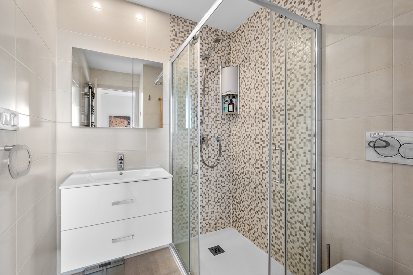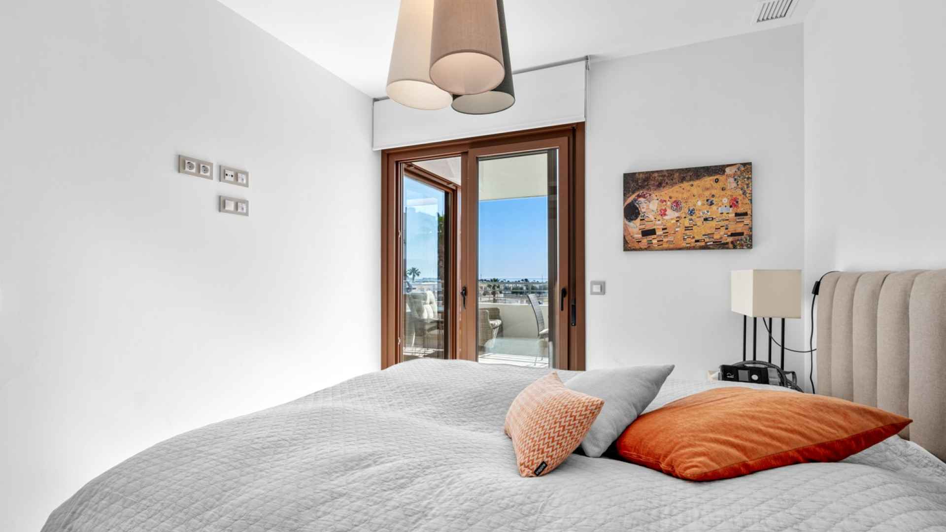 This beautiful, South-facing modern apartment benefits from high ceilings and large windows that allow for plenty of natural light. The lovely, spacious, sun terrace boasts fabulous sea views and is accessed from the living room and is the perfect spot to relax or enjoy dining all fresco. The apartment comprises of two bedrooms, with the master bedroom benefiting from fitted wardrobes, a door leading out onto the sun terrace and an en-suite bathroom with a shower, whilst the guest bedroom also has fitted wardrobes and is served by the house bathroom. The living room is bright and airy and flows into an open plan, stylish fitted kitchen with a separate utility room.