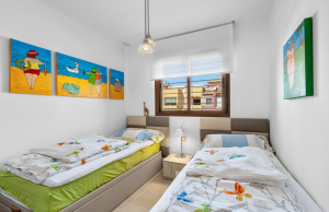 The property is situated on the simply stunning Terrazas de Campoamor gated urbanisation which boasts, a fabulous central swimming poo area, gardens, a kids park, a Jacuzzi, plus an outside gym.