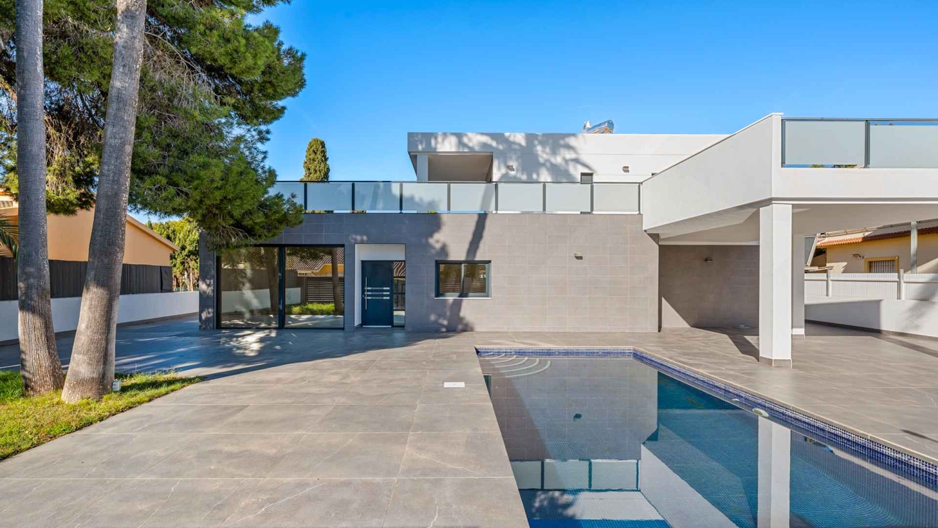 This Impressive, Modern Design, Four Bedroom, Three Bathroom Detached Villa is located in the heart of Dehesa de Campoamor, Orihuela Costa on the Costa Blanca South. Perfectly positioned within walking distance of the golden Mediterranean beaches (700m) and a vibrant selection of local eateries, this property offers the ultimate blend of comfort, convenience, and coastal charm. Just a short drive away you have the wonderful Zenia Boulevard shopping mall, a great choice of golf courses such as; Villamartin, Campoamor & Las Ramblas, plus some other lovely sandy beaches all along the Orihuela Costa resorts.