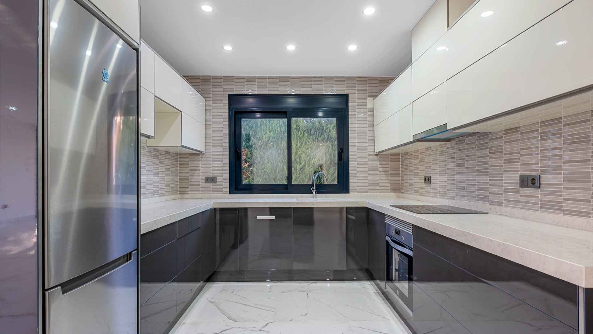 High-quality finishes can be found throughout the property: marble floors, aluminium windows with electric blinds, central heating, and air conditioning in all rooms.