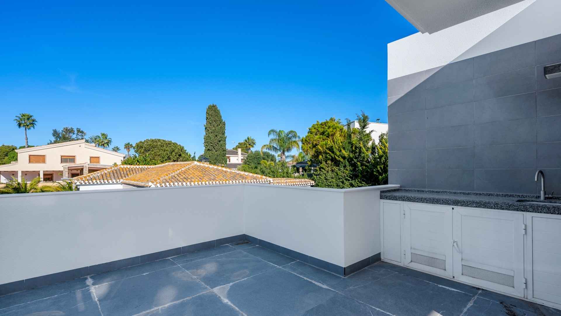 The solarium includes a sink and is prepared for a barbecue installation, making it an ideal space for relaxation and outdoor gatherings.