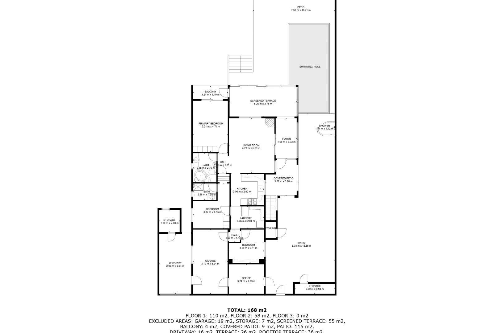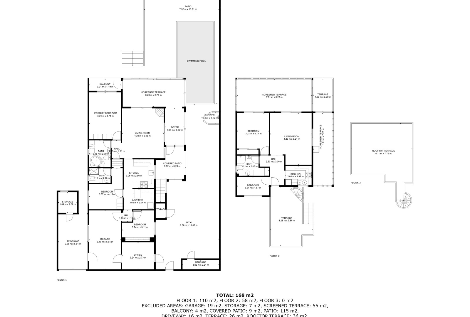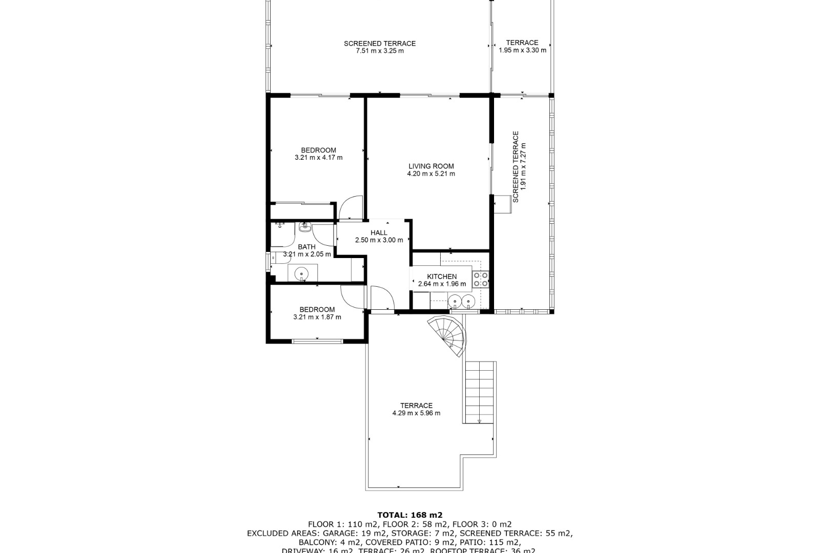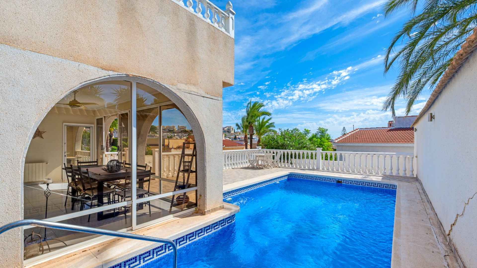 The main part of the villa in brief comprises of; three bedrooms, two bathrooms, a living room, a fitted kitchen with utility area, plus several screened or covered sun terraces. There is also an office in the garage area. For the full details please see the floorplans at the end of the photos.