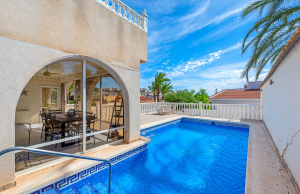 This very spacious, five bedroom, detached villa is located in a lovely residential area of Ciudad Quesada on the Costa Blanca South. Within a 15/20 walk to have a great choice of amenities in the town centre including; shopping boulevards, banks, bars, cafes, restaurants, supermarkets and much more. A few minutes drive away takes you down to the beautiful La Marquesa golf course where you have another selection of amenities. The nearest stunning sandy beaches can be reached in a 10 minute drive at Guardamar del Segura.