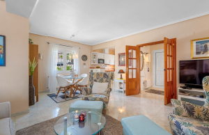 The main part of the villa comprises of; a lovely, large glazed in sun terrace which has created an additional dining and living room, a spacious open plan living room with both lounge and dining areas which lead into a semi-open plan fully fitted kitchen. two double bedrooms with fitted wardrobes, plus two bathrooms, where one of them is en-suite to the master bedroom. Both bathrooms have showers.