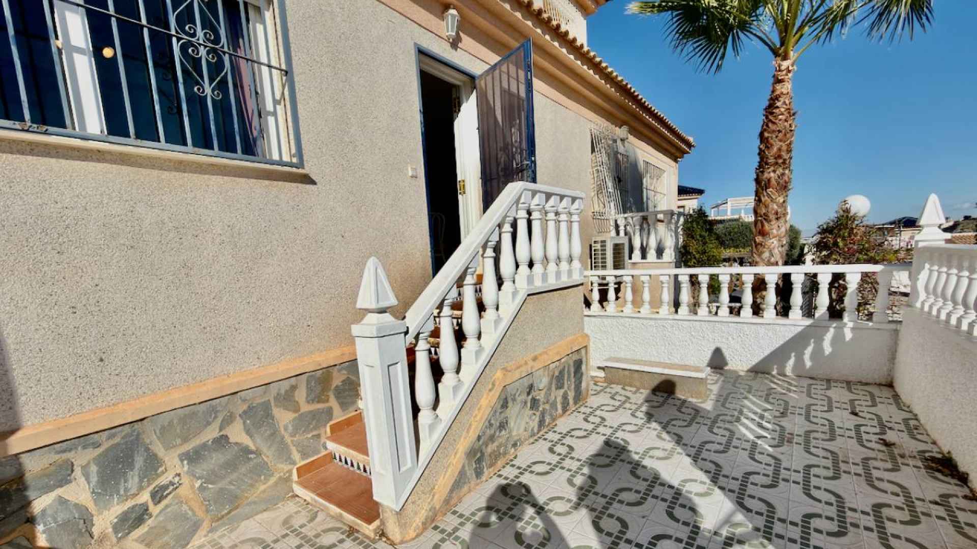 This bright and airy, South-facing, three bedroom, two bathroom, "bluetop" style quad bungalow is located in an elevated part of Ciudad Quesada on the Costa Blanca South. Situated close to a multi purpose Big Shopping store, the Quesada gym and the Snooker and Bowling clubs. There is also a parade of lovely local restaurants and bars nearby plus a new main chain supermarket. In less than a 5 minute drive or 15/20 minute walk you will be down on the stunning La Marquesa golfing area of Ciudad Quesada where you will find a great choice of amenities and in just 5 minutes in the other direction you have bustling Quesada high street with it famous arches, shopping boulevards, banks, bars and restaurants and much much more ... The glorious blue flag beaches of Guardamar del Segura are just a 10 minute drive away.