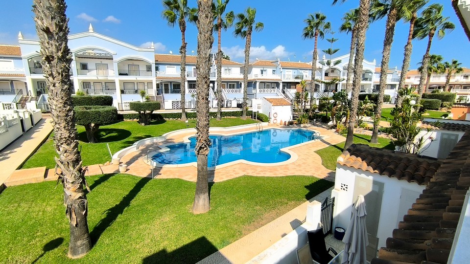 This Attractive, Spacious, three bedroom, two bathroom, "Lola" style townhouse is located in the highly desirable Dona Pepa area of Ciudad Quesada on the Costa Blanca South. The property is situated on the beautiful and well kept gated urbanisation of Conjunto Granada which boasts a fabulous and very large central swimming pool and garden areas. The property is ideally placed within walking distance to a wealth of amenities including; bars, restaurants, supermarkets, shops, medical centre, pharmacy and even a luxury spa hotel. Also, within walking distance you have the ever popular Quesada high street with its famous arches, banks, supermarkets, shopping boulevards and much more. For the keen golfer you have the beautiful La Marquesa golf course within a short drive and for beach lovers the nearest beautiful sandy beaches can be reached at Guardamar del Segura in an easy 10 minute drive.