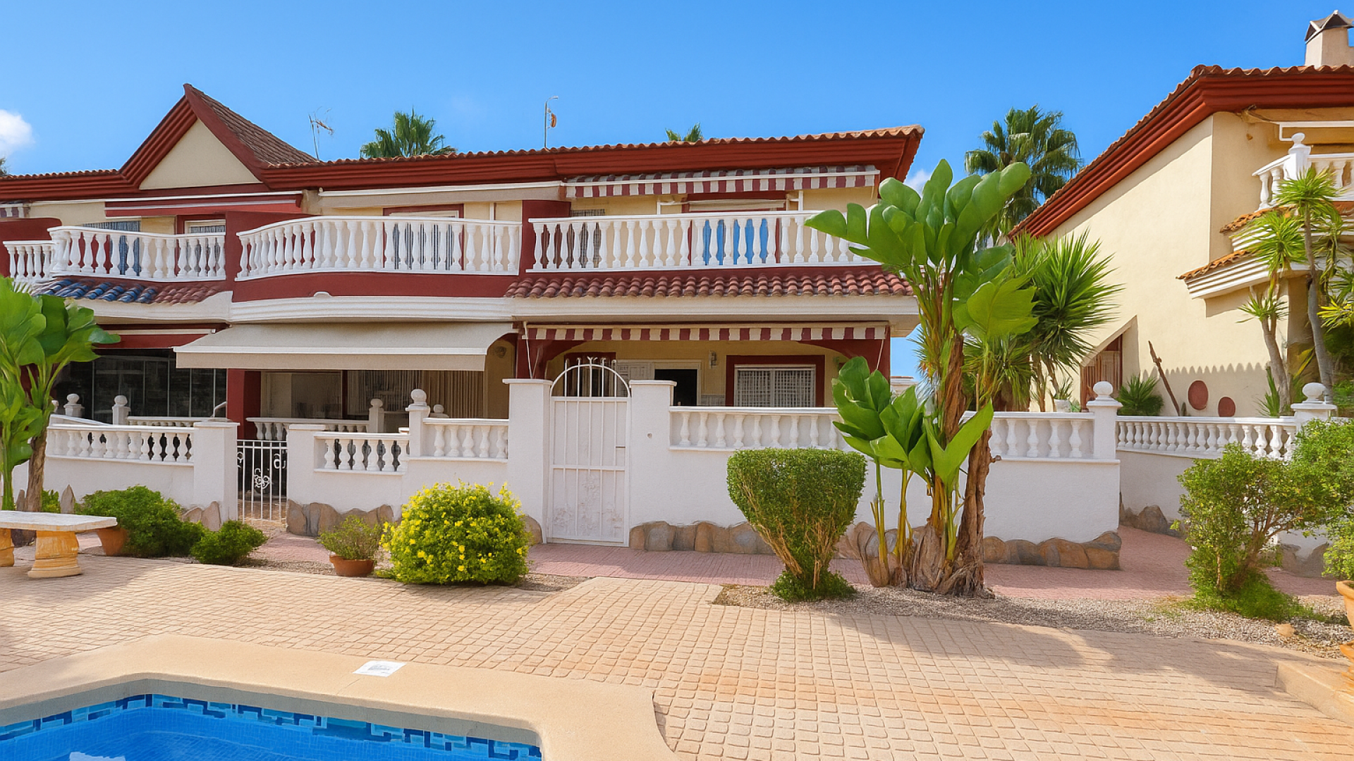 This Immaculately Presented, Spacious, 2/3 bedroom, 2 bathroom, semi-detached "Lola" style townhouse is located in the highly desirable Dona Pepa area of Ciudad Quesada on the Costa Blanca South. The property is situated on a popular and well kept gated urbanisation which boasts fabulous central swimming pool and garden areas. The property is ideally placed within walking distance to a wealth of amenities including; bars, restaurants, supermarkets, shops, medical centre, pharmacy and even a luxury spa hotel. Also, within walking distance you have the ever popular Quesada high street with its famous arches, banks, supermarkets, shopping boulevards and much more. For the keen golfer you have the beautiful La Marquesa golf course within a short drive and for beach lovers the nearest beautiful sandy beaches can be reached at Guardamar del Segura in an easy 10 minute drive.
