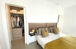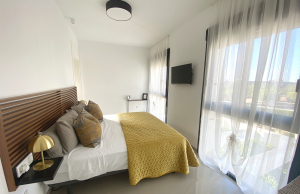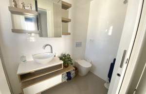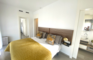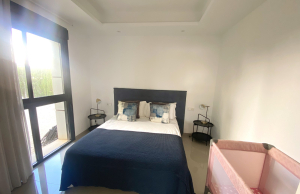 Inside this villa is a large open plan living and dining area with multi aspect patio doors opening onto the pool terraces and gardens which fill the entire ground floor with natural light. There is a part separate, fully fitted new style kitchen complete with all the appliances fittings expected in a design of this quality. Also on the ground floor is large double bedroom and family bathroom. There is excellent use of space for closed in storage which is a rarity for a lot of the new build designs.