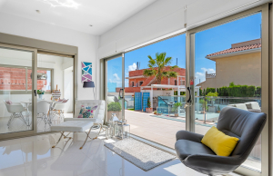 The first floor consists of two double bedrooms, both with en-suite bathrooms with showers, and from both bedrooms you have direct access out onto a fabulous and very large rooftop solarium where you can enjoy some terrific views out over the salt lakes as well as soaking up the all day sunshine.