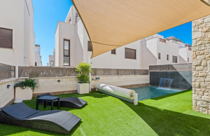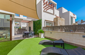 This Stunning, Spacious & Beautifully presented, three bedroom, three bathroom villa is located in the highly desirable area of Pueblo Bravo, Ciudad Quesada on the Costa Blanca South. Within walking distance you will find; a main brand supermarket, bars, restaurants, and a private school. Also very nearby you have the local amenities of Dona Pepa to include; a pharmacy, bars, restaurants, medical centre, language school plus the lovely La Laguna spa hotel. An easy 5 minute drive will take you into the very popular main Quesada high street which offers a further wealth of amenities and services including; restaurants, bars, supermarkets, banks, petrol station, bowling alley and two shopping boulevards. Also close by is the beautiful La Marquesa golf course with its lovely clubhouse, a main brand supermarket plus several bars and restaurants. The pretty Recorral Nature Park with its lovely lakes and picnic areas and the Rojales family Aqua park are also just a short drive away. The nearest stunning sandy beaches can be reached in an easy 10 minute drive at Guardamar del Segura.