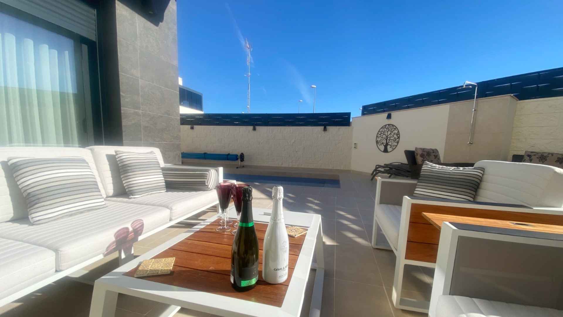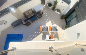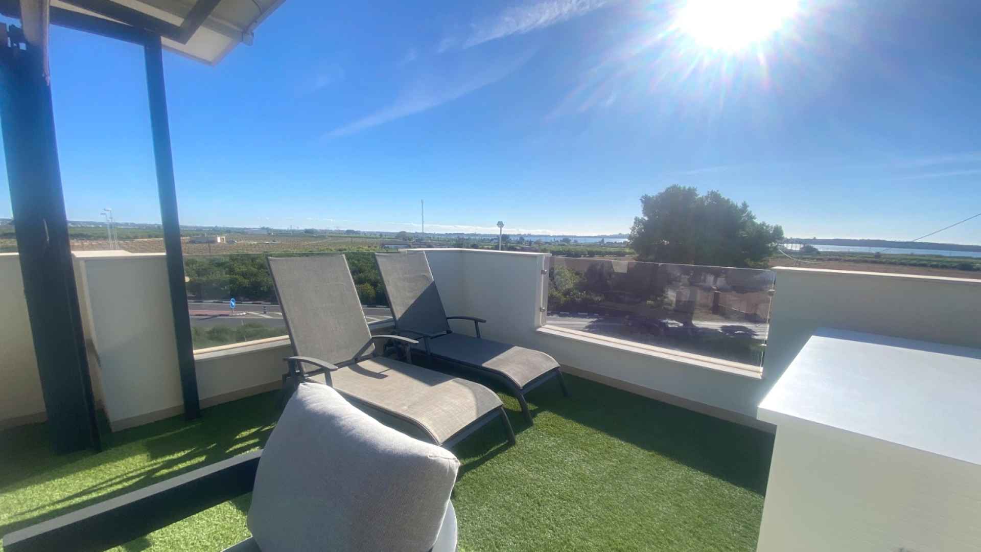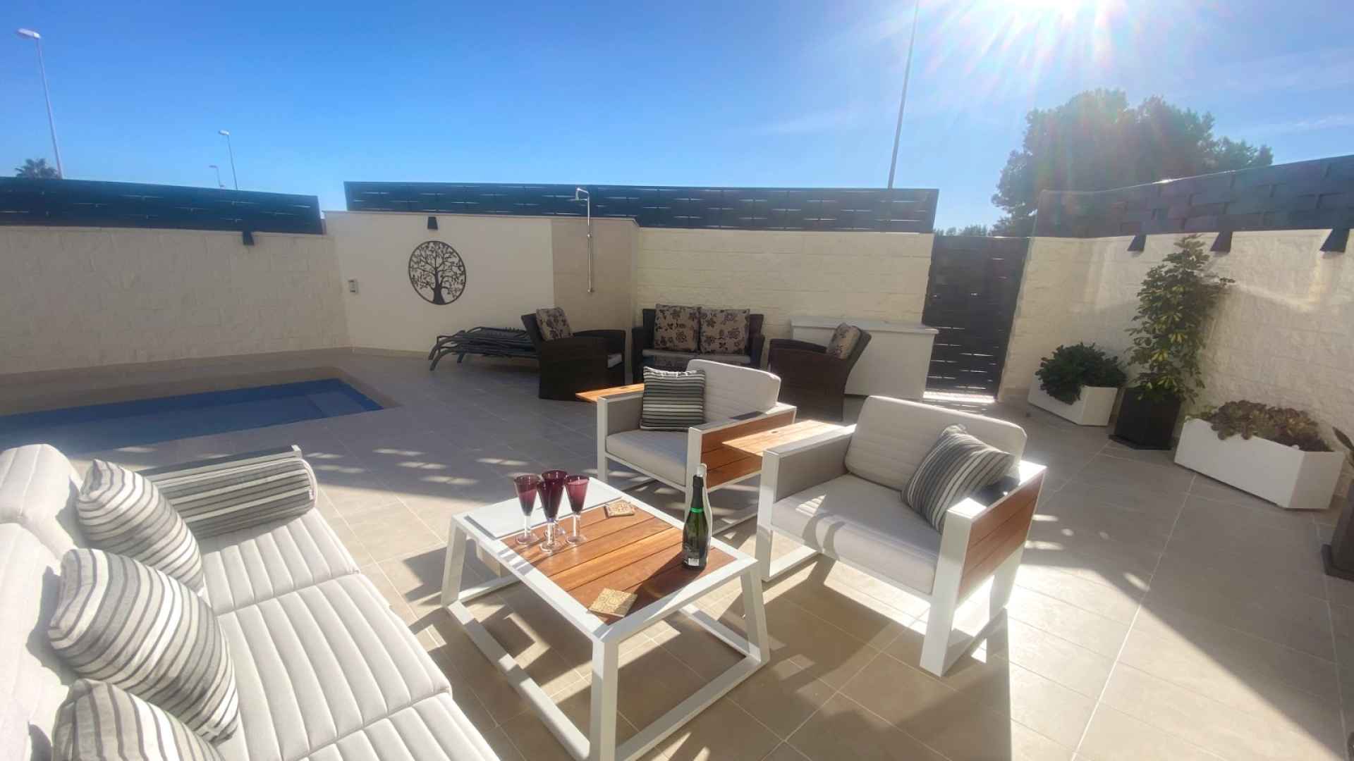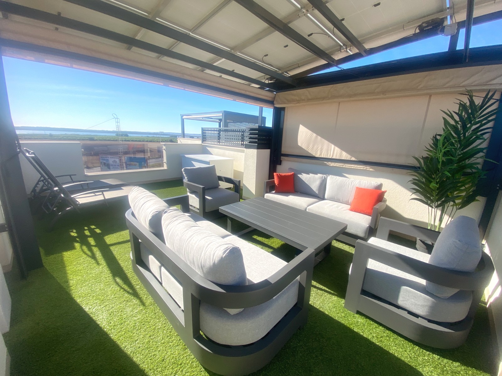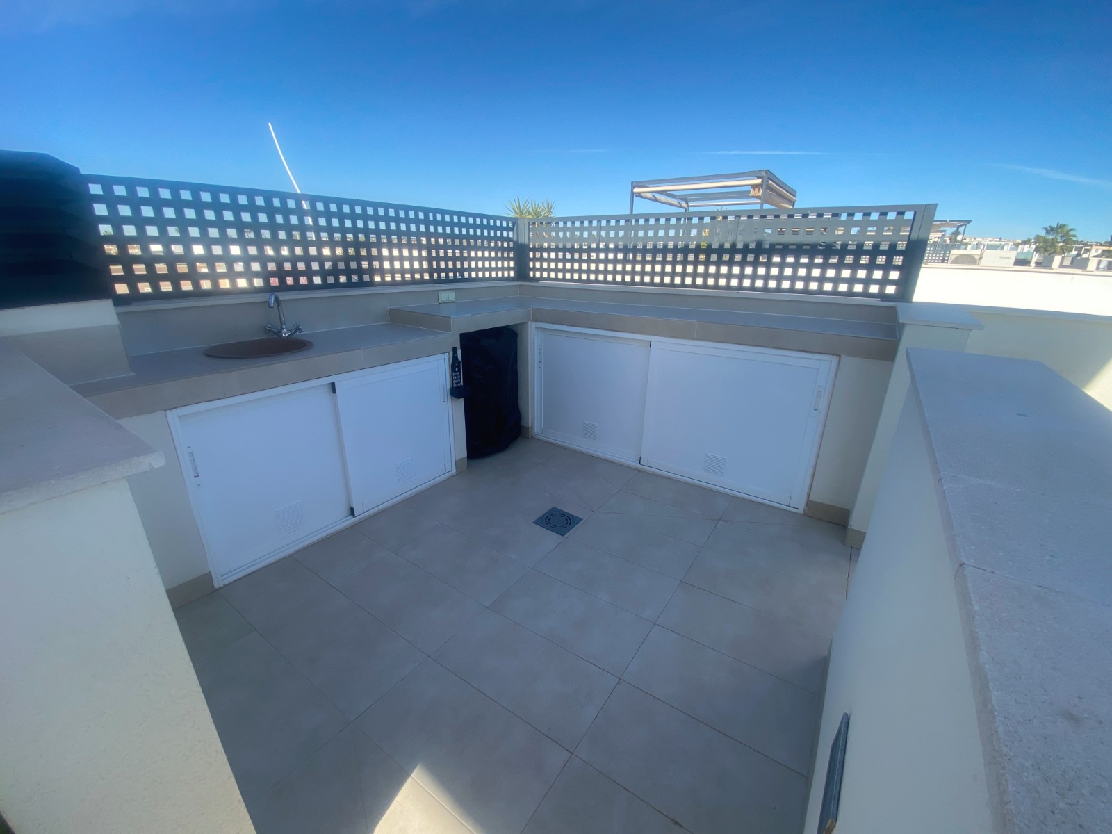 Steps from the upper sun terrace lead up to a large, sun-drenched rooftop solarium where you have plenty of room for lounging and dining garden furniture as well as a summer kitchen and a gazebo offering welcome shade during those hotter months. As well as enjoying the all year around sunshine you can also enjoy some great views out across the beautiful salt lakes.