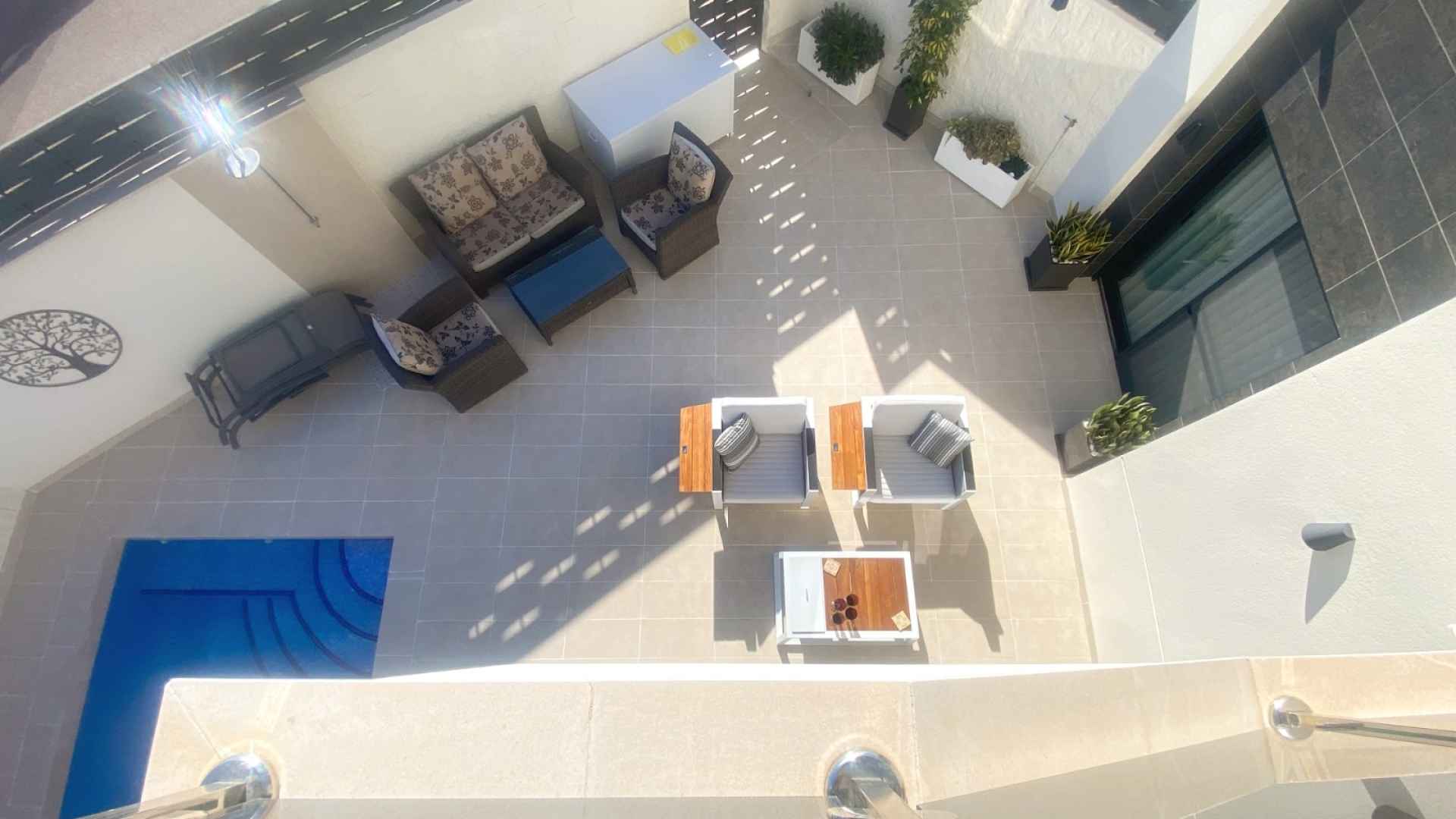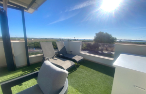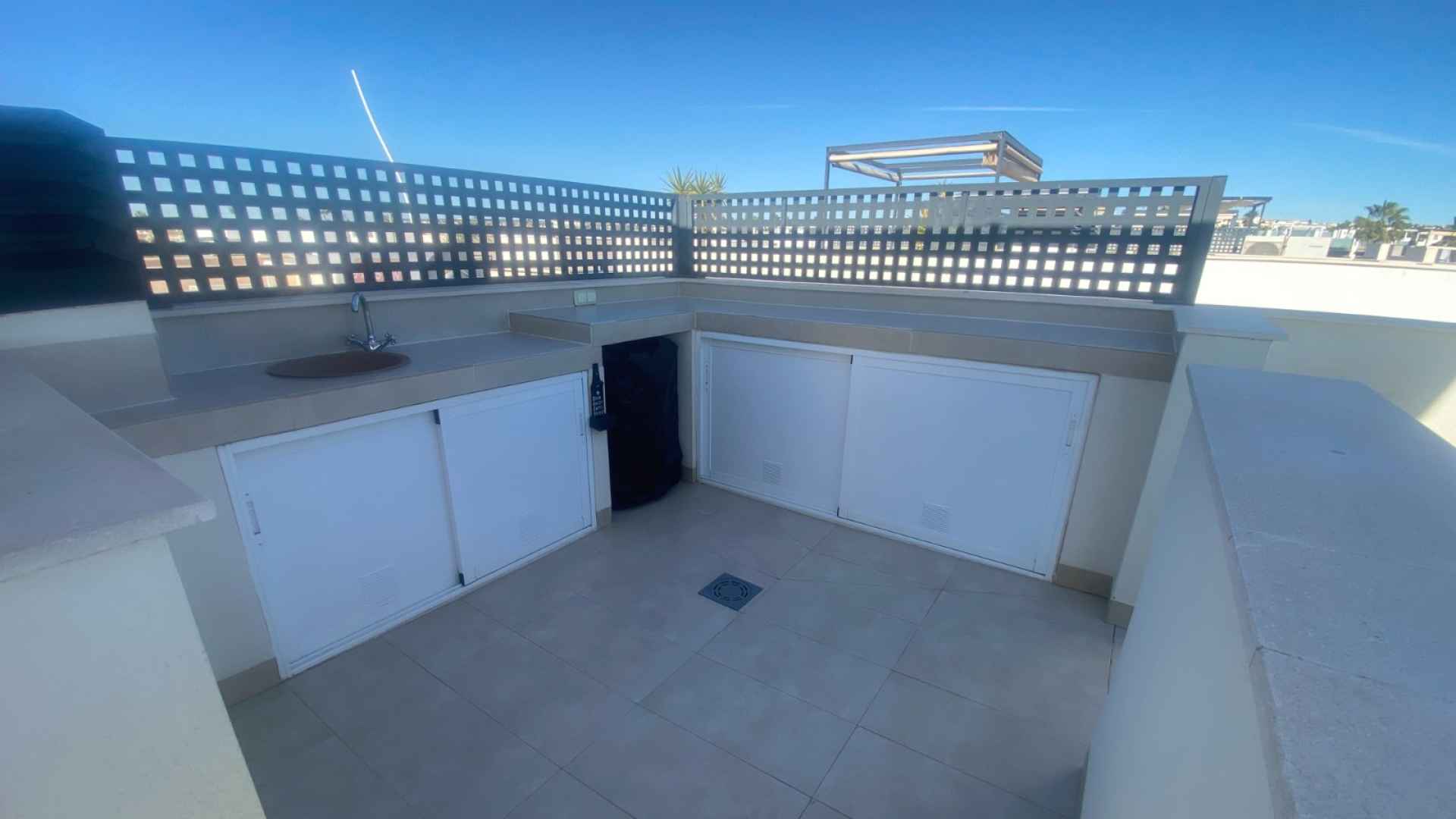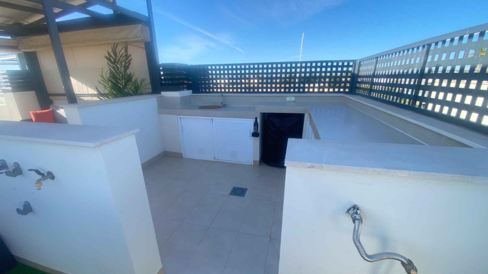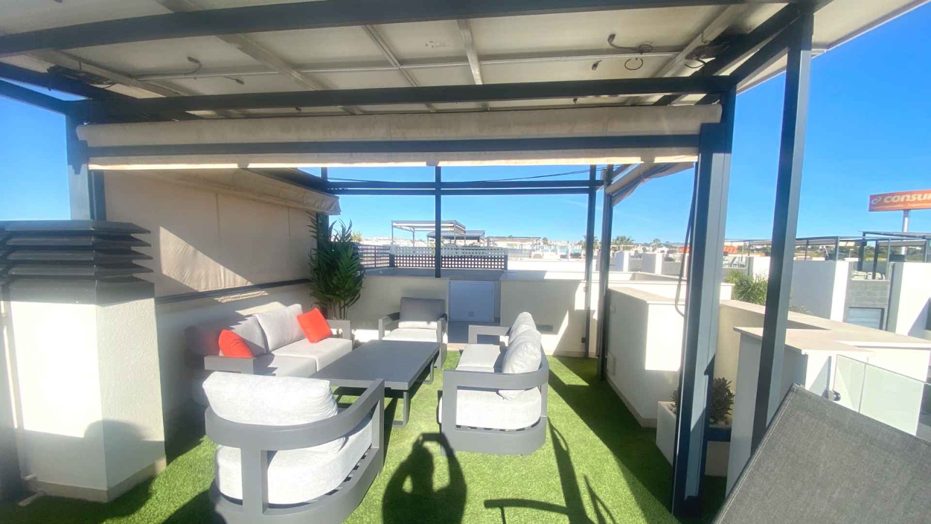Steps from the upper sun terrace lead up to a large, sun-drenched rooftop solarium where you have plenty of room for lounging and dining garden furniture as well as a summer kitchen and a gazebo offering welcome shade during those hotter months. As well as enjoying the all year around sunshine you can also enjoy some great views out across the beautiful salt lakes.