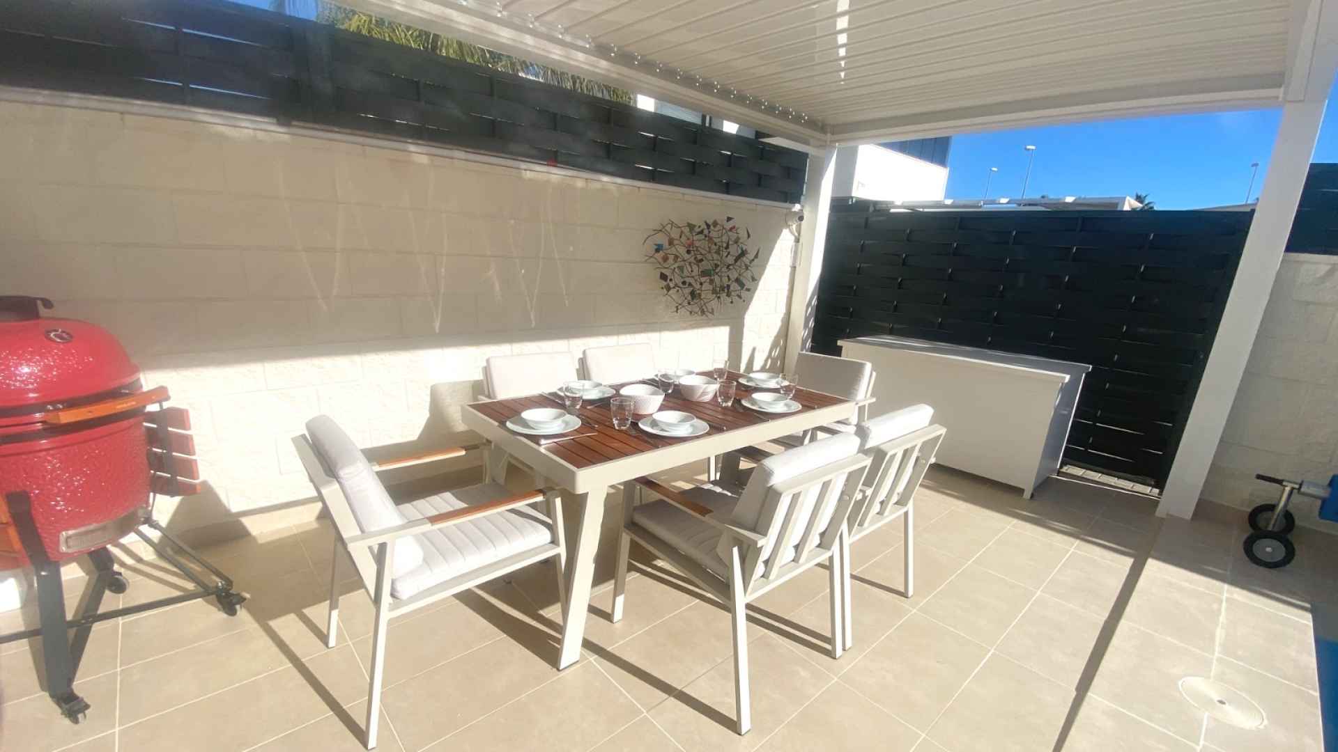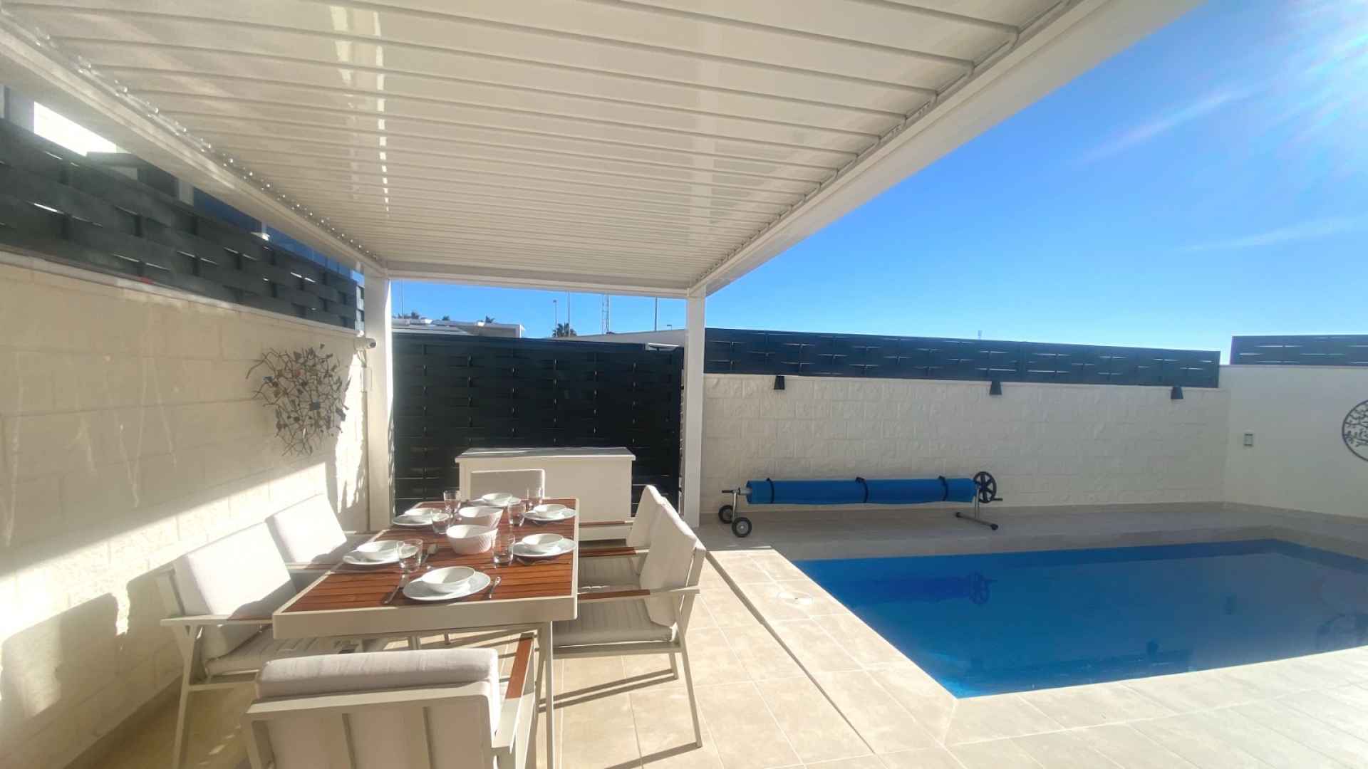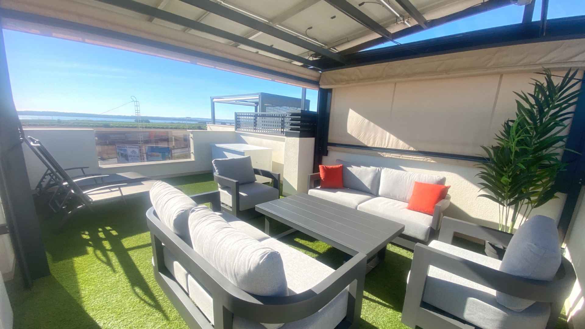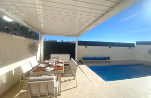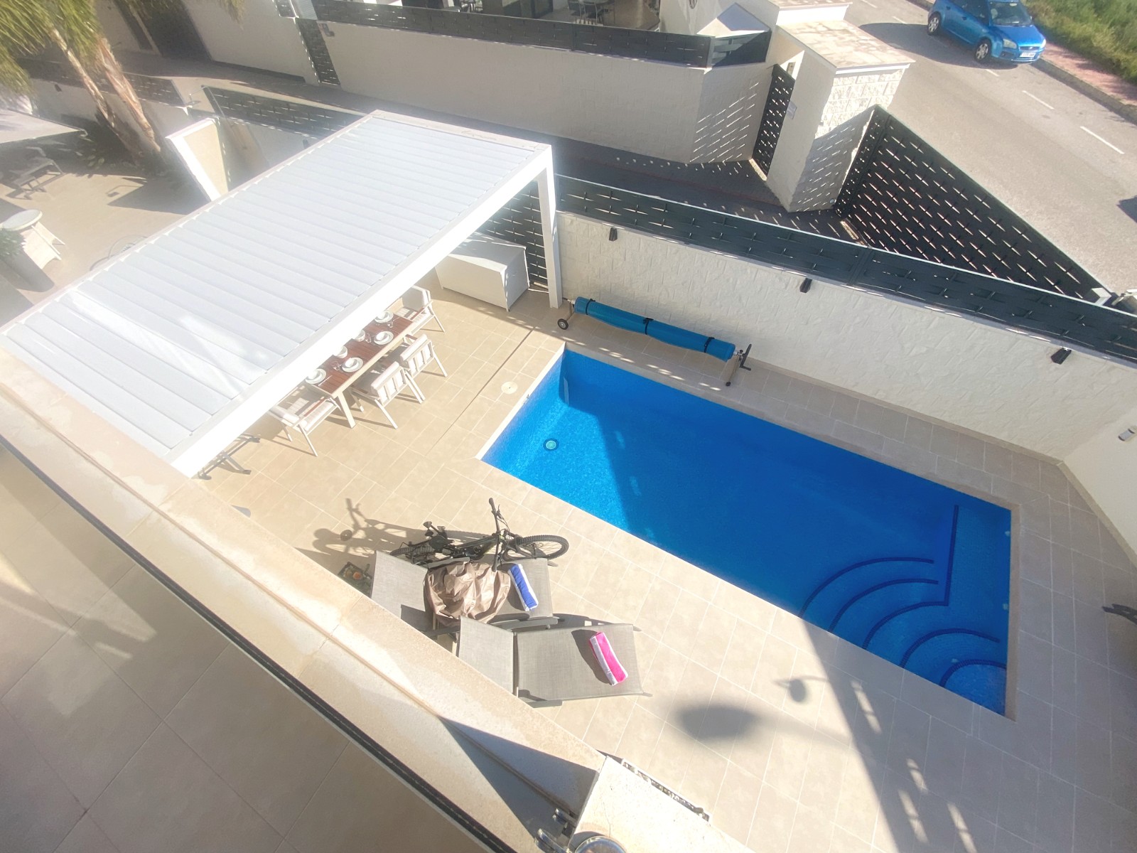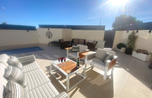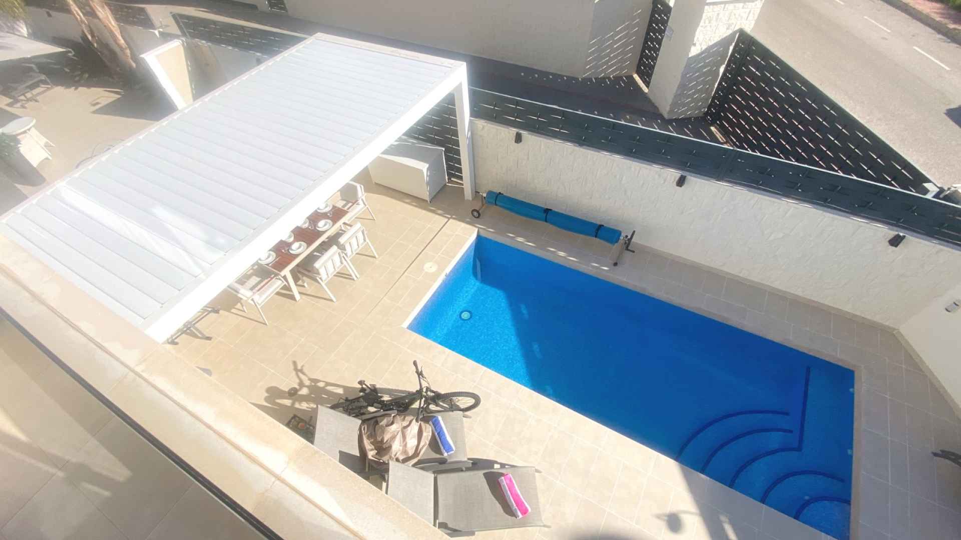 Steps from the upper sun terrace lead up to a large, sun-drenched rooftop solarium where you have plenty of room for lounging and dining garden furniture as well as a summer kitchen and a gazebo offering welcome shade during those hotter months. As well as enjoying the all year around sunshine you can also enjoy some great views out across the beautiful salt lakes.
