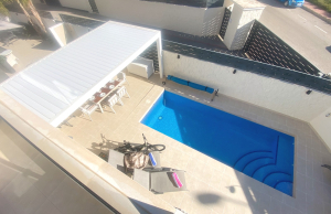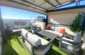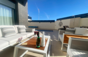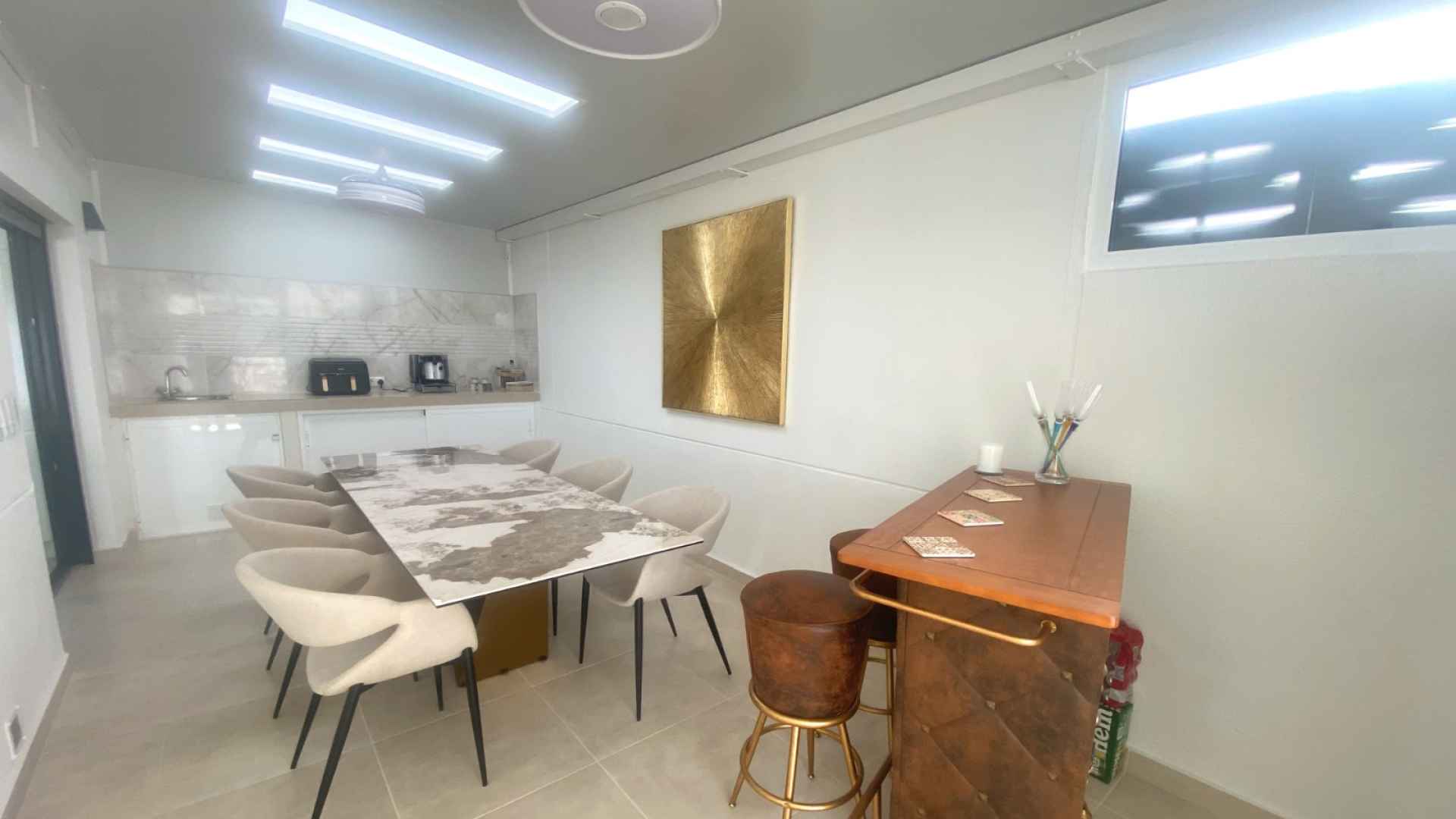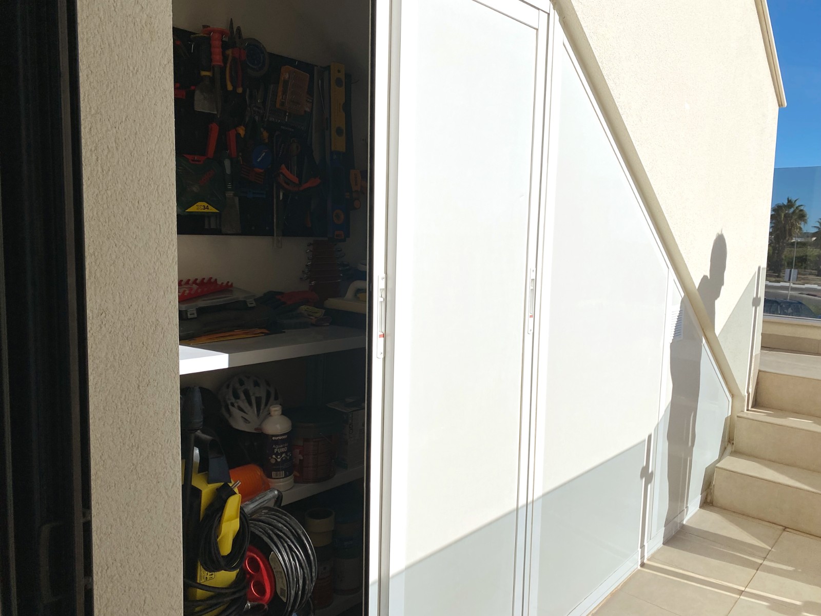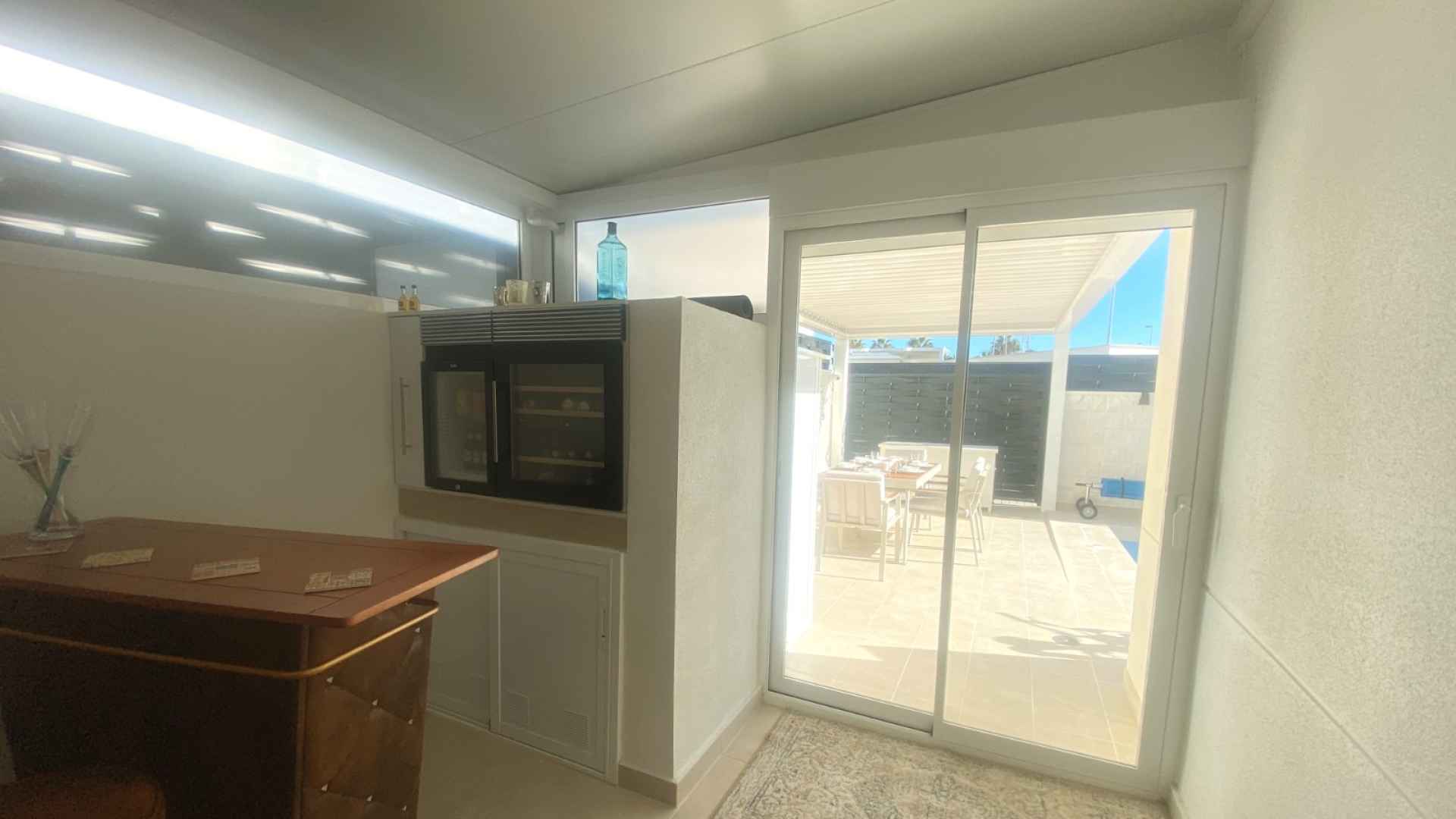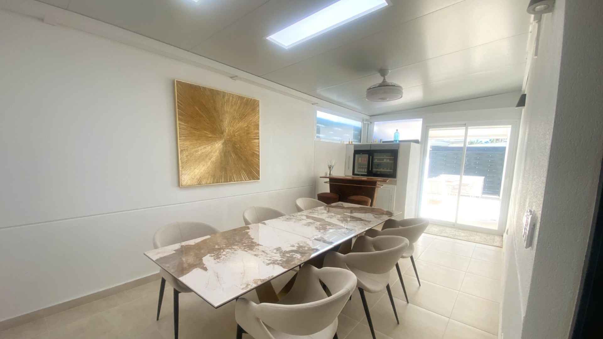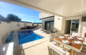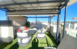 Steps from the upper sun terrace lead up to a large, sun-drenched rooftop solarium where you have plenty of room for lounging and dining garden furniture as well as a summer kitchen and a gazebo offering welcome shade during those hotter months. As well as enjoying the all year around sunshine you can also enjoy some great views out across the beautiful salt lakes.