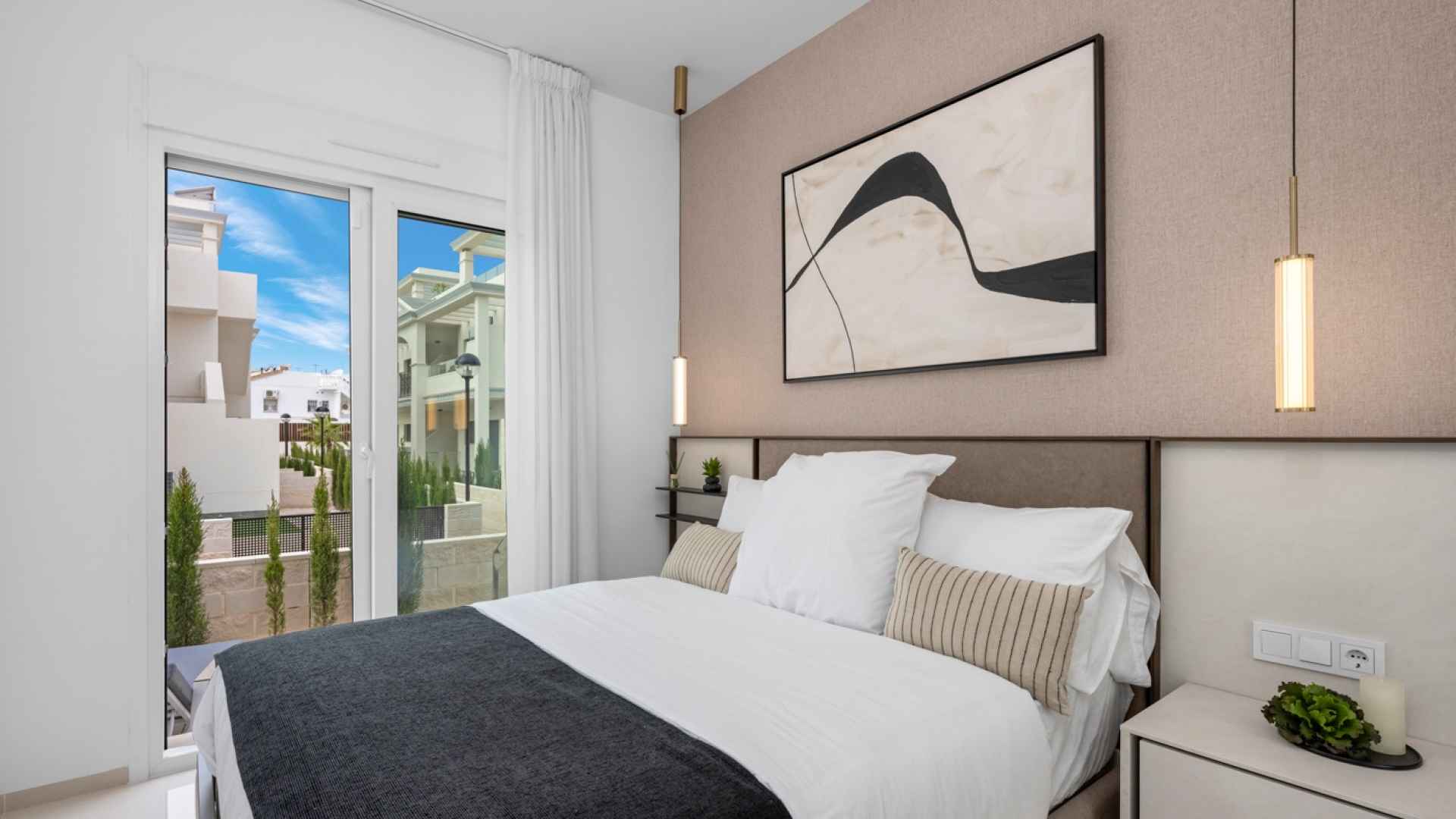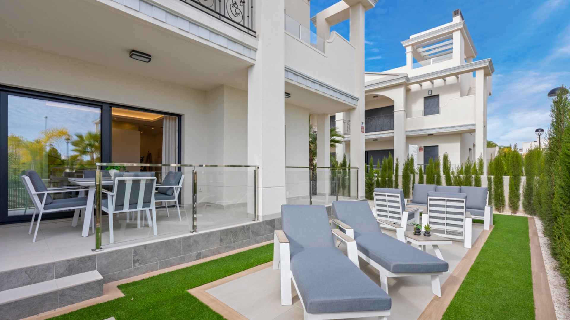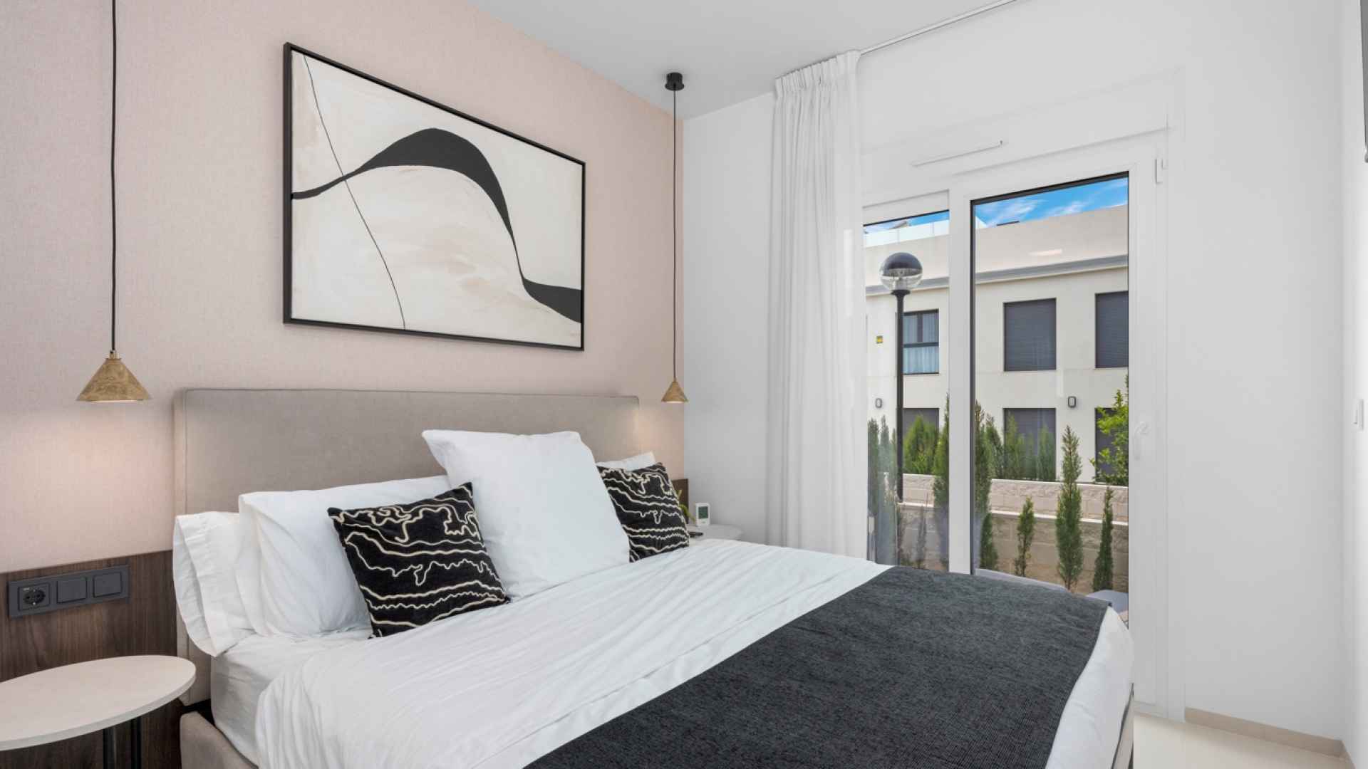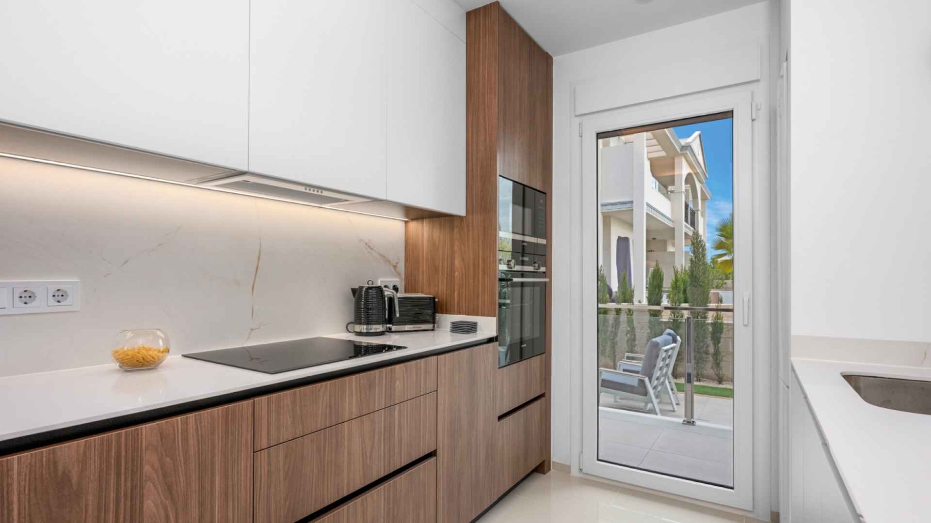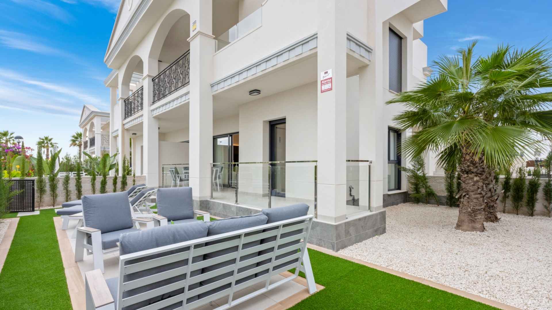 This Fabulous, Spacious, newbuild (2024) resale, two bedroom, two bathroom ground floor apartment is located in the highly desirable area of Pueblo Bravo, Ciudad Quesada on the Costa Blanca South. Within walking distance you will find; a main brand supermarket, bars, restaurants, and a private school. Also very nearby you have the local amenities of Dona Pepa to include; a pharmacy, bars, restaurants, medical centre, language school plus the lovely La Laguna spa hotel. An easy 5 minute drive will take you into the very popular main Quesada high street which offers a further wealth of amenities and services including; restaurants, bars, supermarkets, banks, petrol station, bowling alley and two shopping boulevards. Also close by is the beautiful La Marquesa golf course with its lovely clubhouse, a main brand supermarket plus several bars and restaurants. The pretty Recorral Nature Park with its lovely lakes and picnic areas and the Rojales family Aqua park are also just a short drive away. The nearest stunning sandy beaches can be reached in an easy 10 minute drive at Guardamar del Segura.