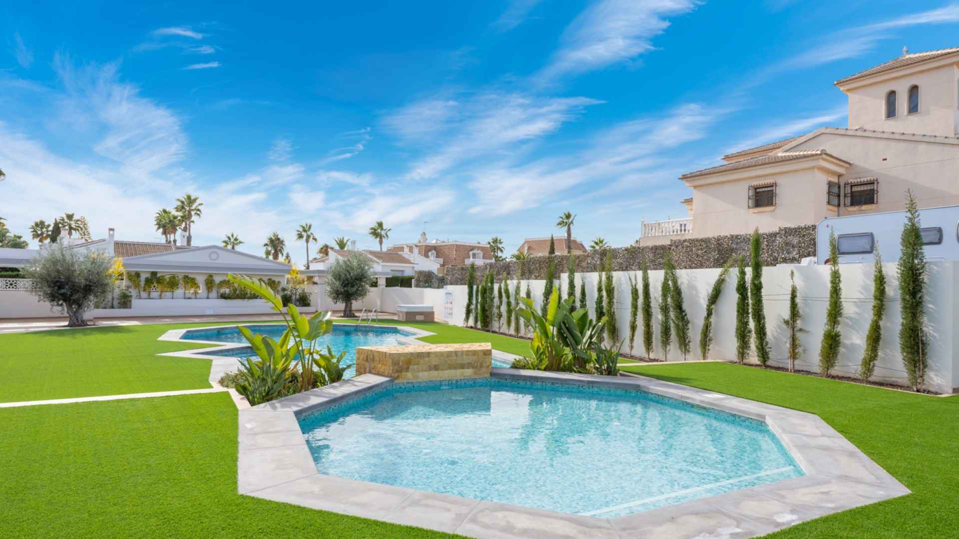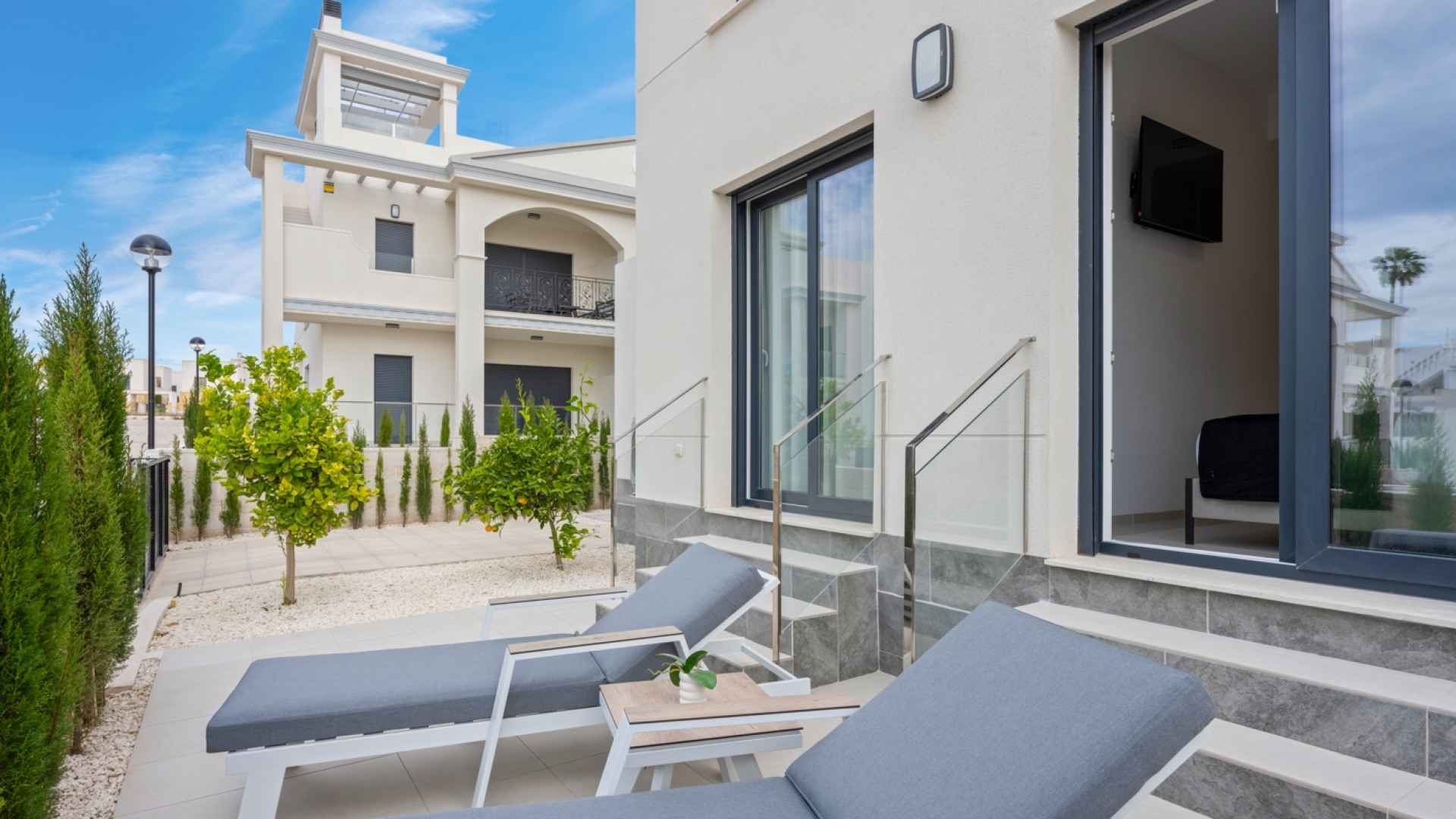 This Modern and Stylish South-West facing property makes up part of the prestigious Adhara residential complex which offers excellent common areas, with two swimming pools: one in front of the house and another in the back, surrounded by ample space for sunbathing and relaxation.