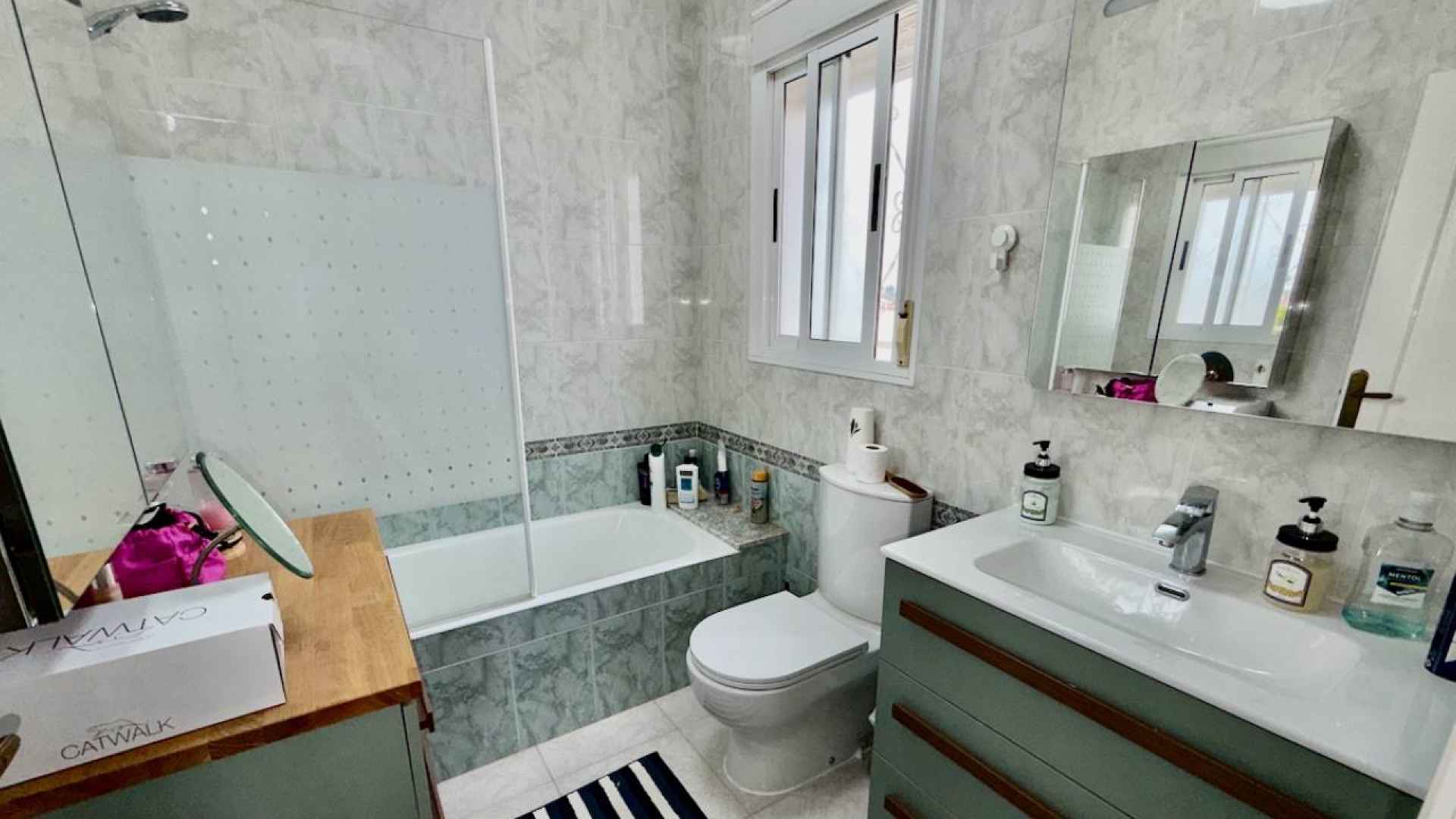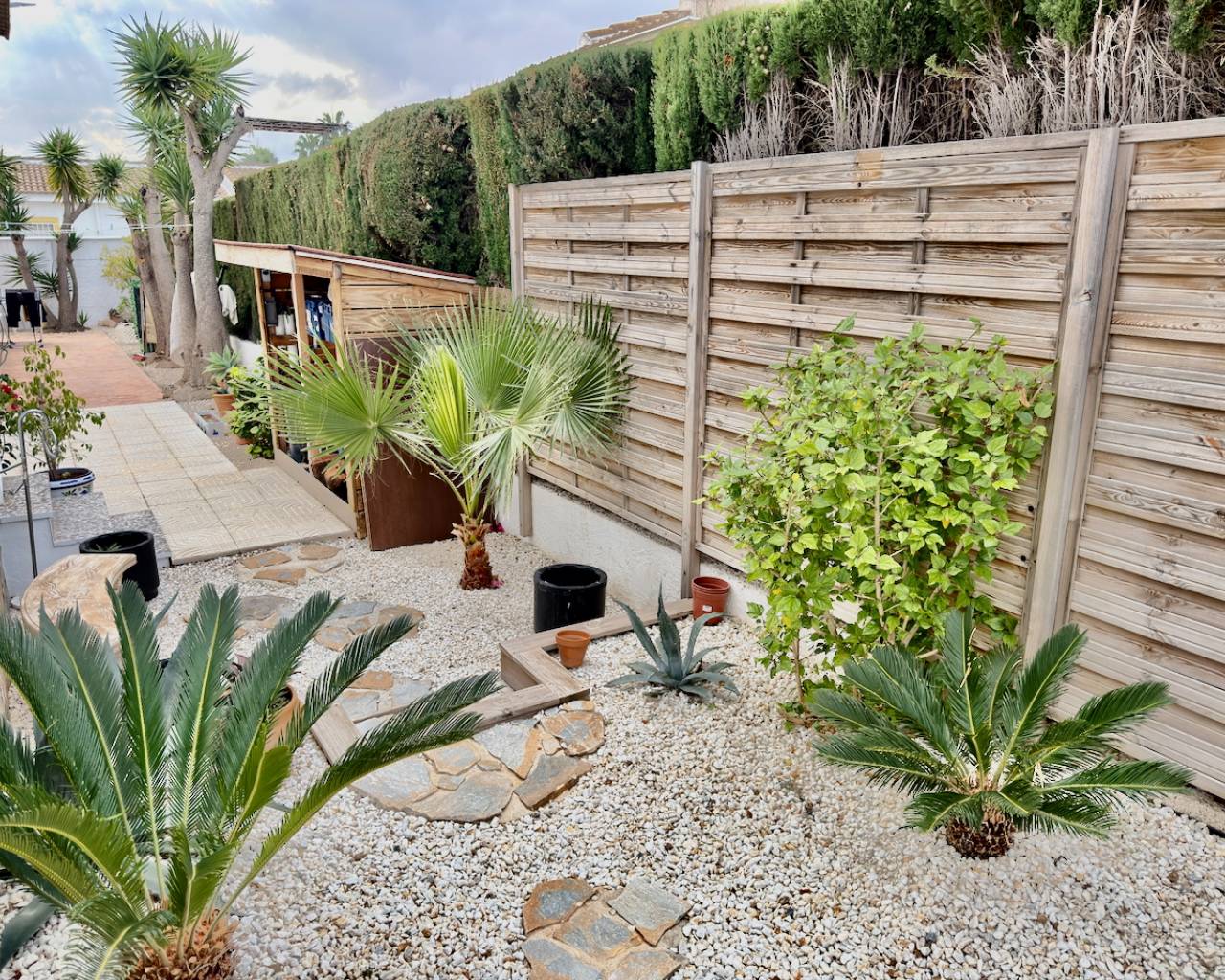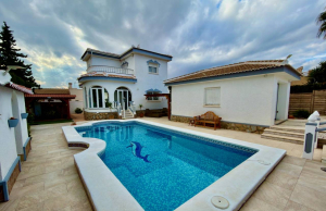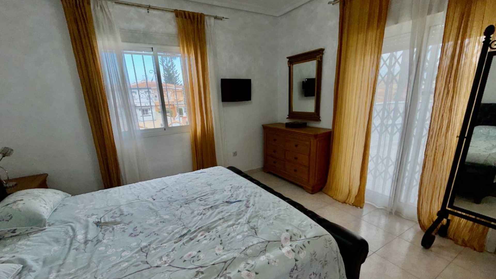 This Attractive and immaculately presented, three bedroom, three bathroom detached villa is located in the highly desirable area of Pueblo Bravo, Ciudad Quesada on the Costa Blanca South. Within walking distance you will find; a main brand supermarket, bars, restaurants, and a private school. Also very nearby you have the local amenities of Dona Pepa to include; a pharmacy, bars, restaurants, medical centre, language school plus the lovely La Laguna spa hotel. An easy 5 minute drive will take you into the very popular main Quesada high street which offers a further wealth of amenities and services including; restaurants, bars, supermarkets, banks, petrol station, bowling alley and two shopping boulevards. Also close by is the beautiful La Marquesa golf course with its lovely clubhouse, a main brand supermarket plus several bars and restaurants. The pretty Recorral Nature Park with its lovely lakes and picnic areas and the Rojales family Aqua park are also just a short drive away. The nearest stunning sandy beaches can be reached in an easy 10 minute drive at Guardamar del Segura.