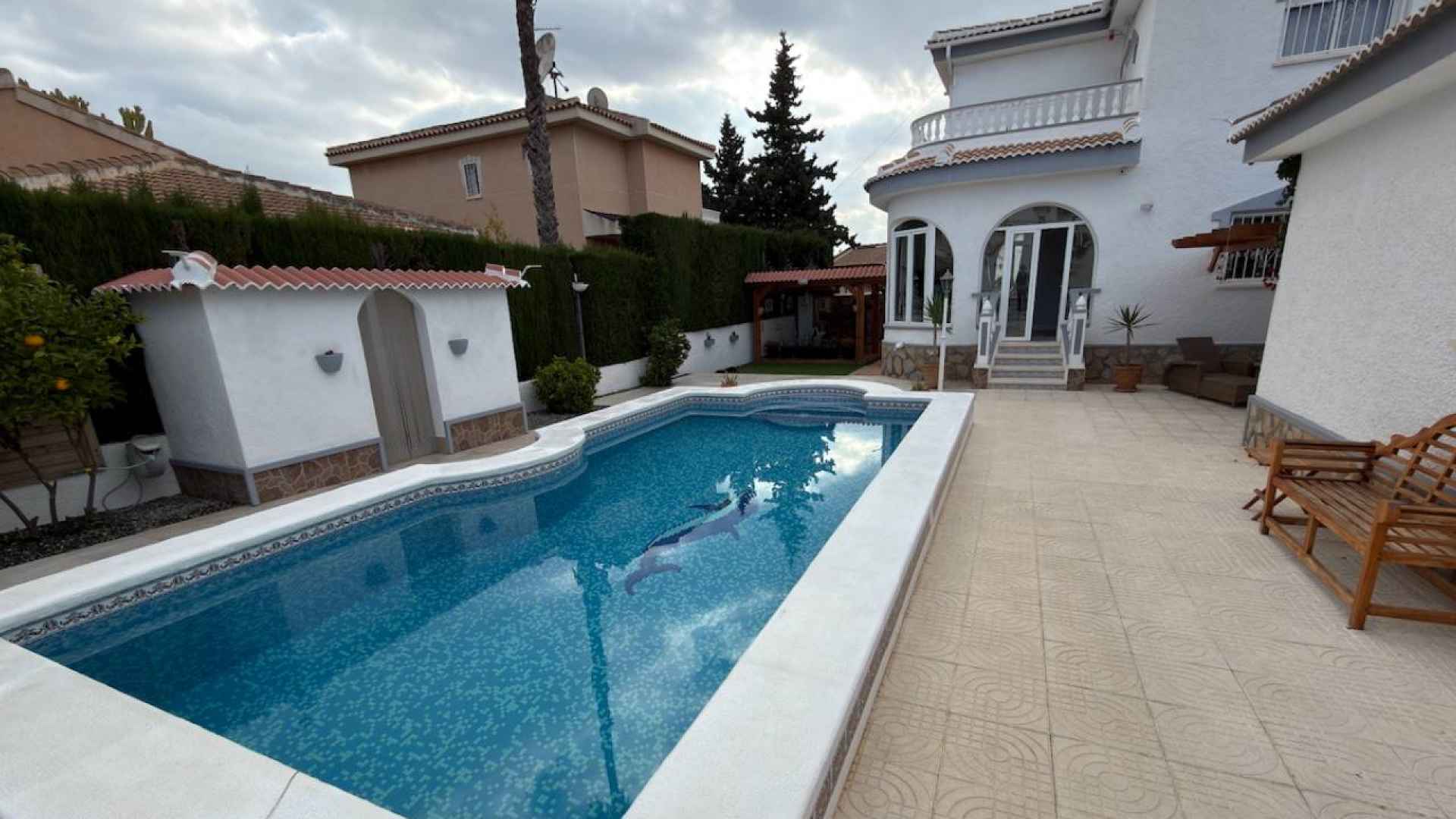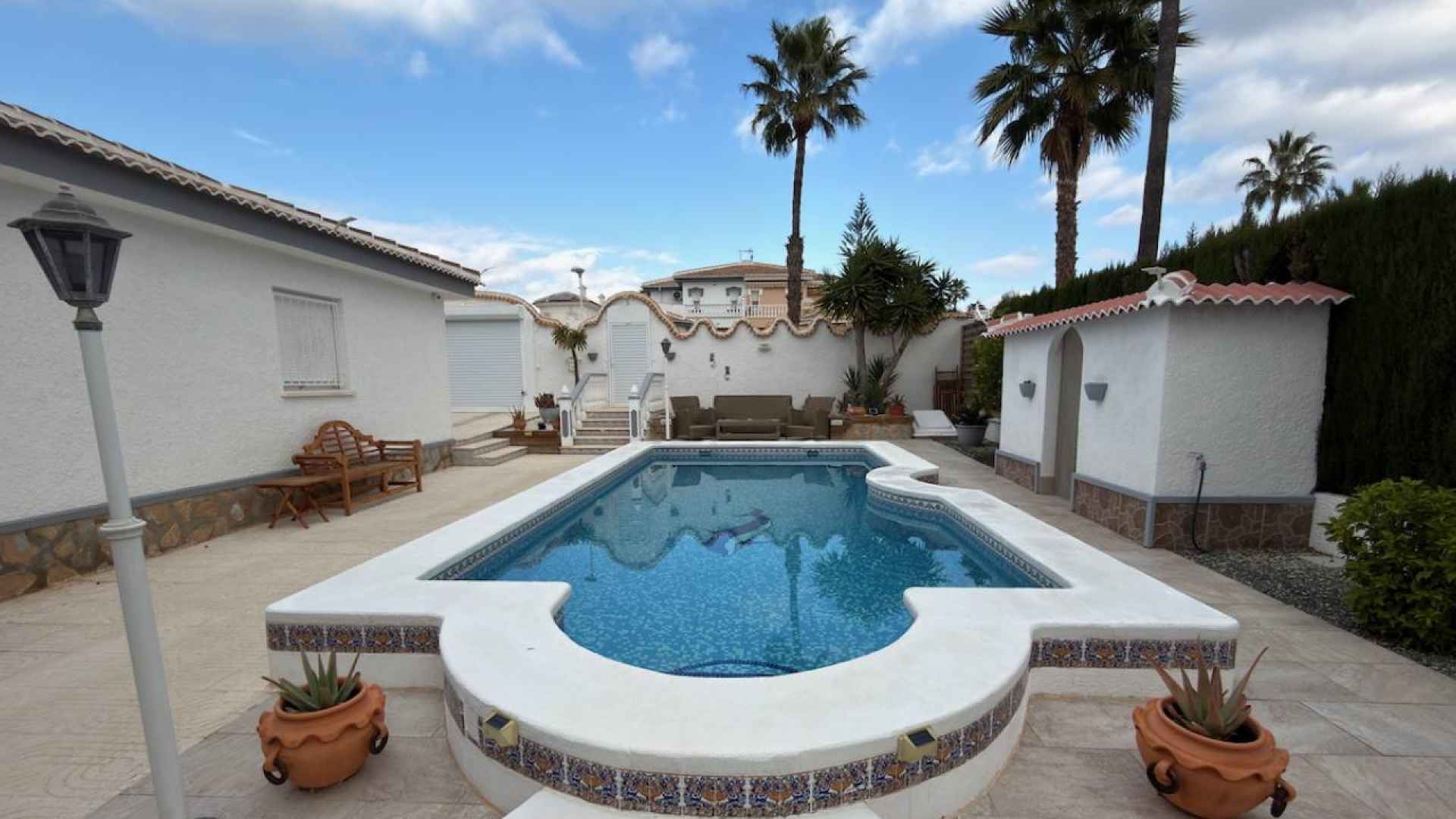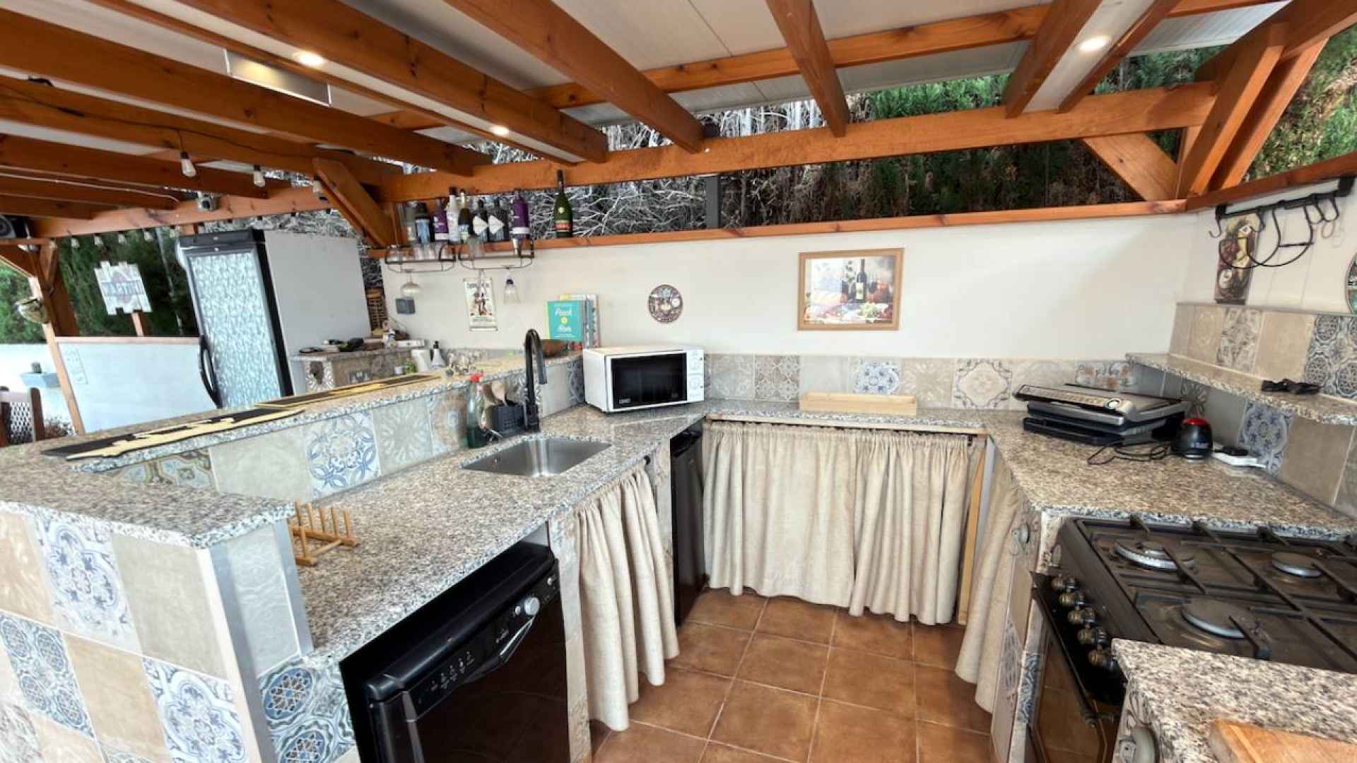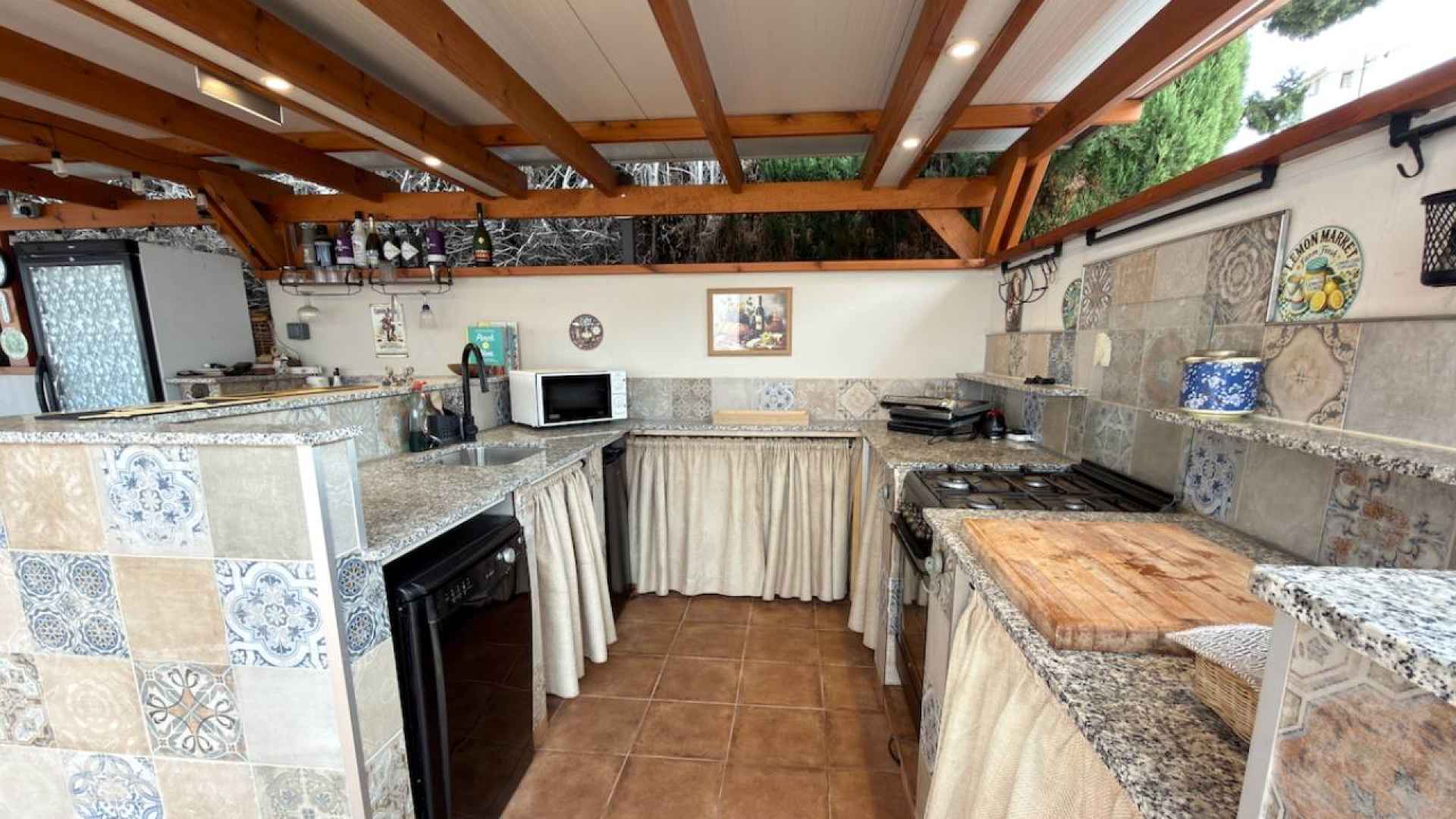 Outside, is a real hi-light with a beautifully maintained 500m2 plot which offers; a lovely feature private swimming pool, a wonderful Summer kitchen, with a covered dining area, off-road parking with a detached garage, plus ample space in which to enjoy the famous Spanish sunshine.