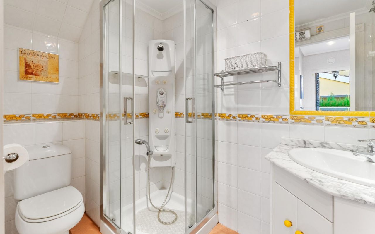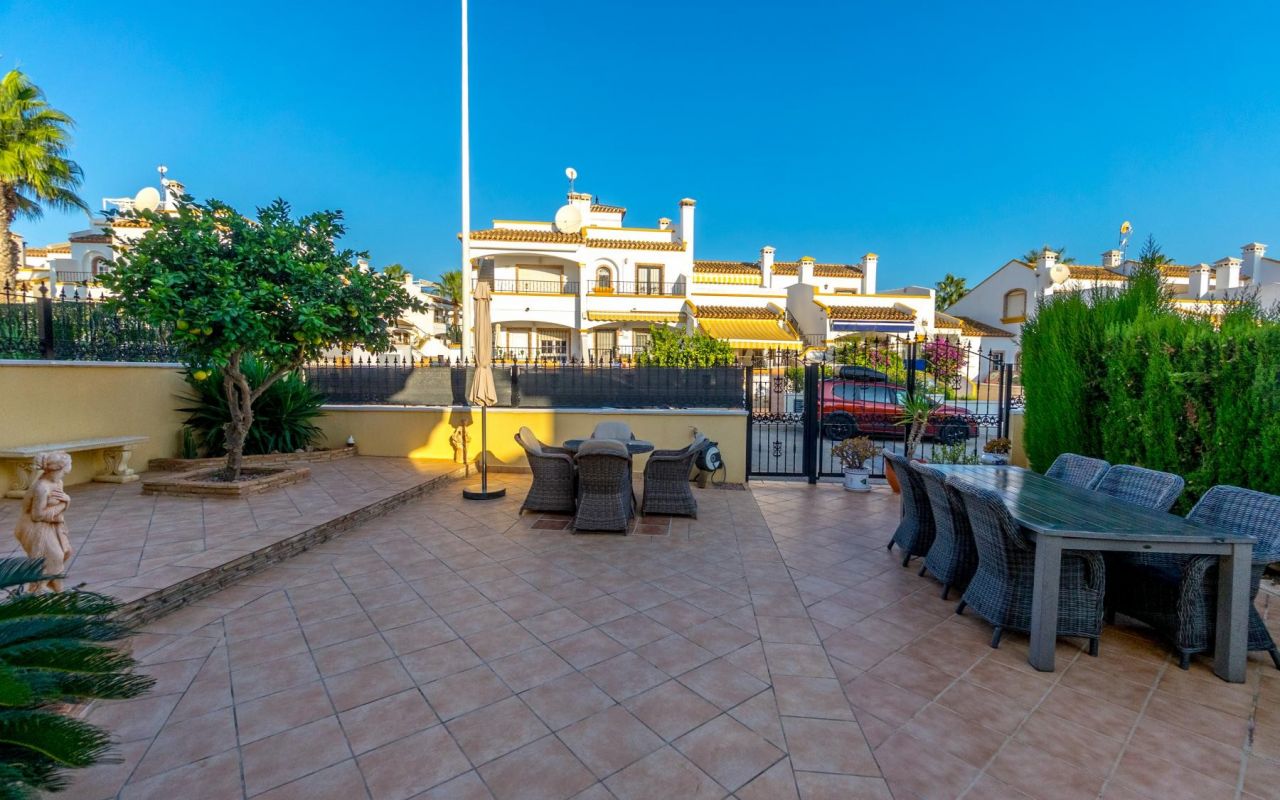 This Delightful, nicely presented, three bedroom, two bathroom semi-detached villa is located in Costa Flamenca Golf II, Los Dolses, Orihuela Costa on the Costa Blanca South. Its location is privileged as it is close to a wide range of shops, restaurants and services and within walking distance of the famous La Zenia Boulevard shopping centre, known for its wide variety of fashionable shops, restaurants and leisure areas. For golf lovers, there are three 18-hole golf courses within 2 km. The AP-7 motorway is only 1 km away, offering excellent connections to the region and for the beach lovers there are sandy beaches all along the Orihuela Costa holiday strip within an easy 5/10 minute drive.