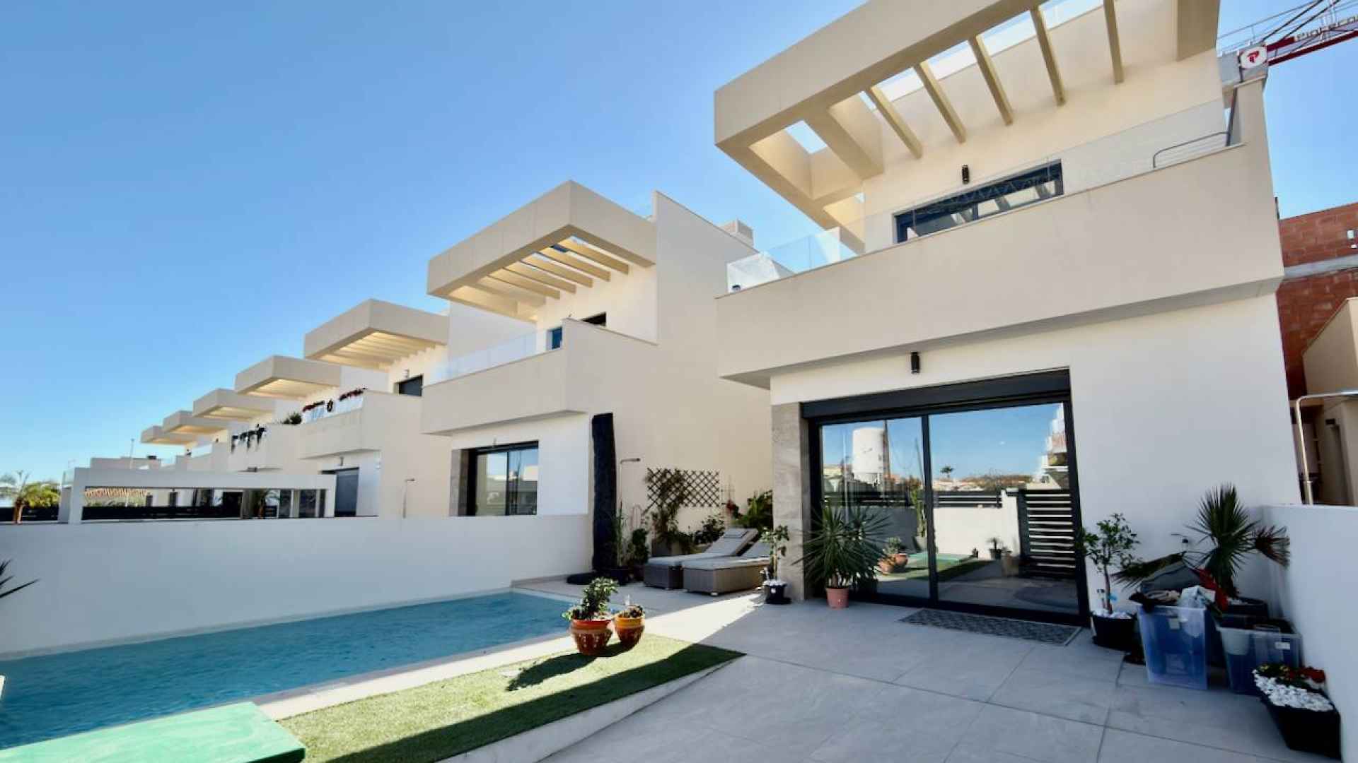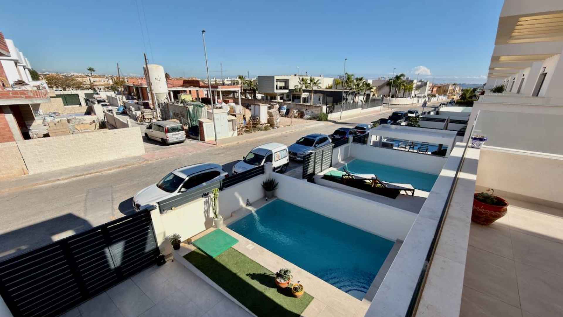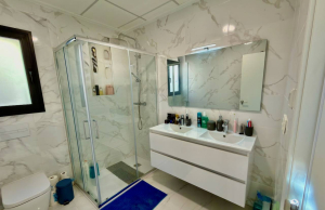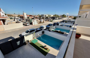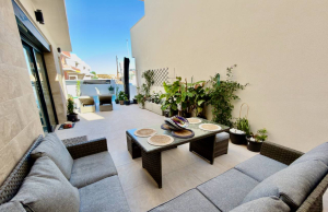 This Stylish, Contemporary Style, 3 bedroom, 2.5 bathroom villa is located on the very popular La Herrada urbanisation just on the outskirts of Los Montesinos on the Costa Blanca South. Situated within a short walk to a large local main brand supermarket and amenities on La Herrada itself and just a 20 minute walk or 5 minute drive into the delightful town of Los Montesinos where you will find a great choice of amenities and services plus a charming village plaza. The property is part of an attractive complex with access to a wonderful communal swimming pool area with lovely areas in which to sit and relax. The nearest stunning sandy beaches can be reached in less than a 15 minute drive at Guardamar del Segura and for the keen golfer there are plenty of top class golf courses in the area including; La Finca, La Marquesa and Las Colinas.