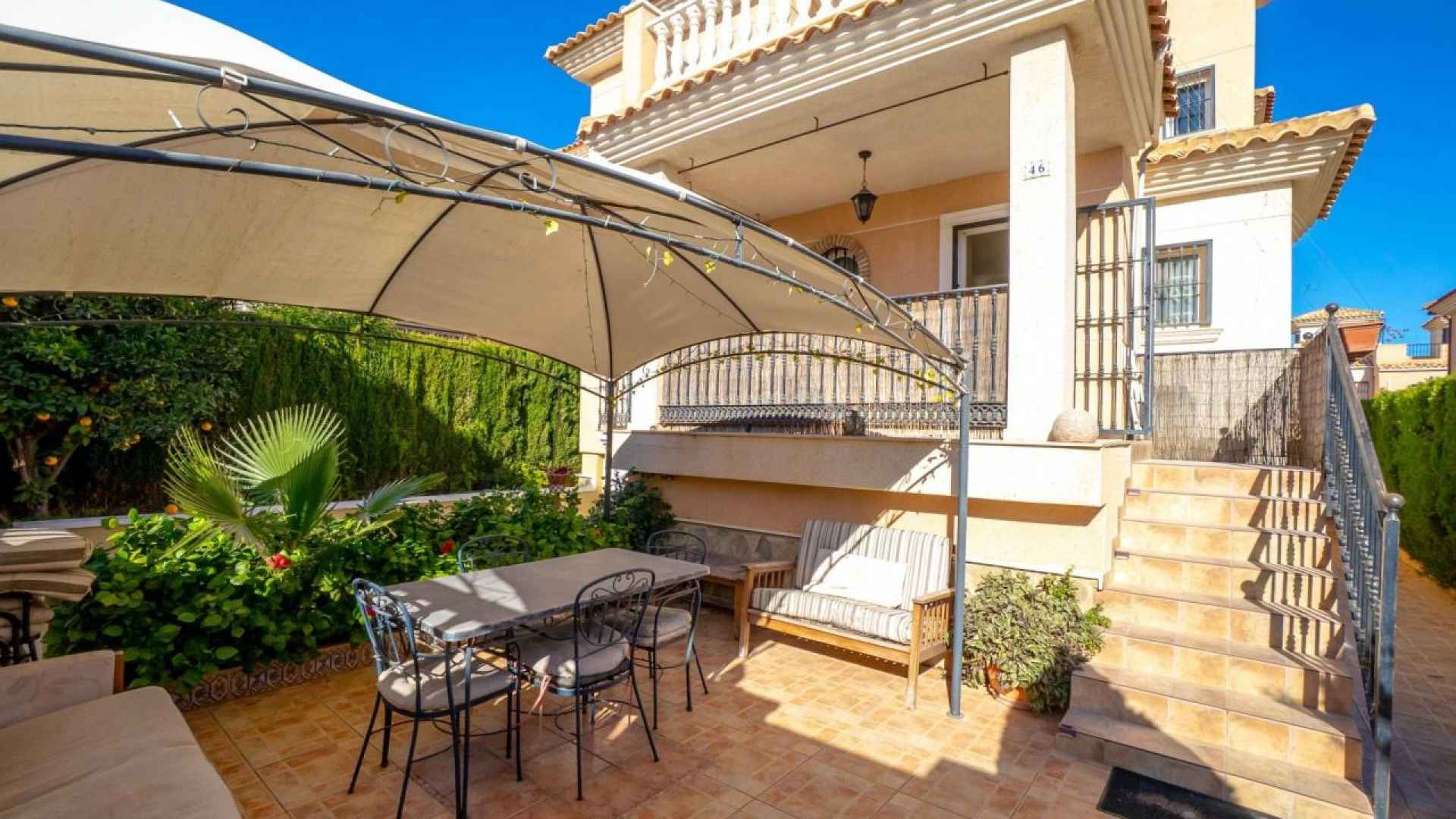 This Attractive, three bedroom Mediterranean style detached villa is located in the popular Los Altos area of the Orihuela Costa on the Costa Blanca South. The location of this property is unbeatable, in a sought after area with supermarkets, commercial centres, bars and restaurants nearby, as well as the Zenia Boulevard shopping mall. Also nearby you have a great choice of sandy beaches all along the Orihuela Costa resorts, plus some wonderful golf courses including; Villamartin, Las Ramblas & Campoamor.