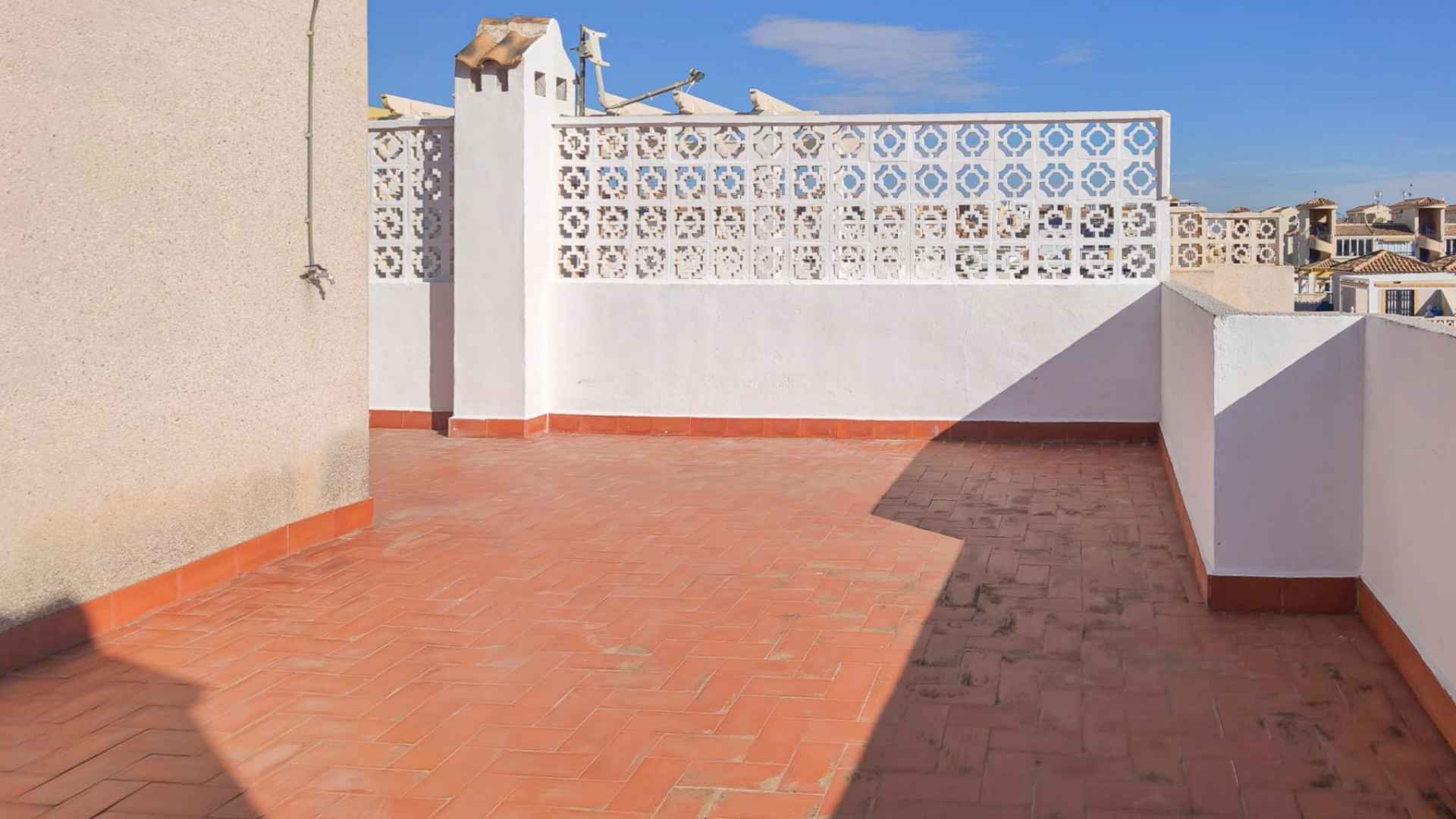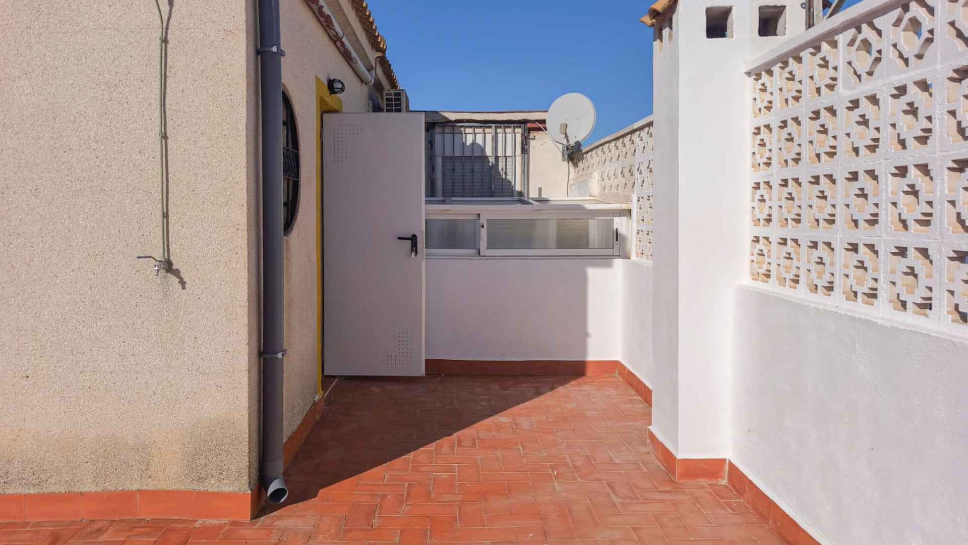 The upper floor, accessed via an internal staircase, offers a bathroom and a bedroom with built-in wardrobe, connected to a spacious balcony and a large solarium terrace of approximately 39m2, ideal for enjoying the Mediterranean climate.