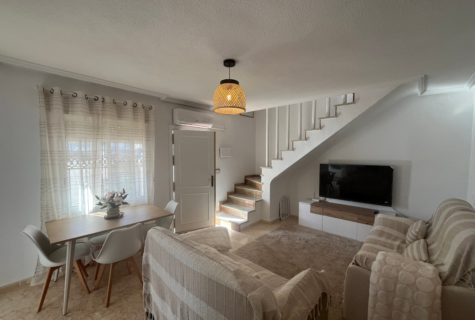 This Attractive South-East facing 3 bedroom, 2 bathroom quad style house is situated in the popular area of Punta Prima, Orihuela Costa on the Costa Blanca South. Nearby you have a great selection of amenities such as; the Punta Prima commercial centre, main brand supermarkets, Zenia Boulevard shopping mall and much more. Within a short drive you have a great selection of sandy beaches all along the Orihuela Costa resorts and for the keen golfer there are some top notch golf courses such as; Villamartin, Campoamor and Las Ramblas.