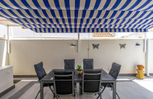 This fantastic, three bedroom Quad Style villa is located in the very popular Jardín del Mar areas of Torrevieja on the Costa Blanca South. The property is in perfect condition and stands out for its excellent location, close to supermarkets, shopping centres, restaurants, bars, water park, cinema, bowling alley and much more including good local bus routes. The centre of Torrevieja plus the lovely beaches, promenade and Marina are just a 10 minute drive away. For the keen golfer there are several great courses within a 15/25 drive including; Villamartin, Las Ramblas, Campoamor and La Finca. You also have access to public transport, making it easy to reach the beautiful local beaches and the town centre. For those who enjoy an active lifestyle, the area offers access to the via verde, the green cycling and walking path, perfect for walks and cycling.