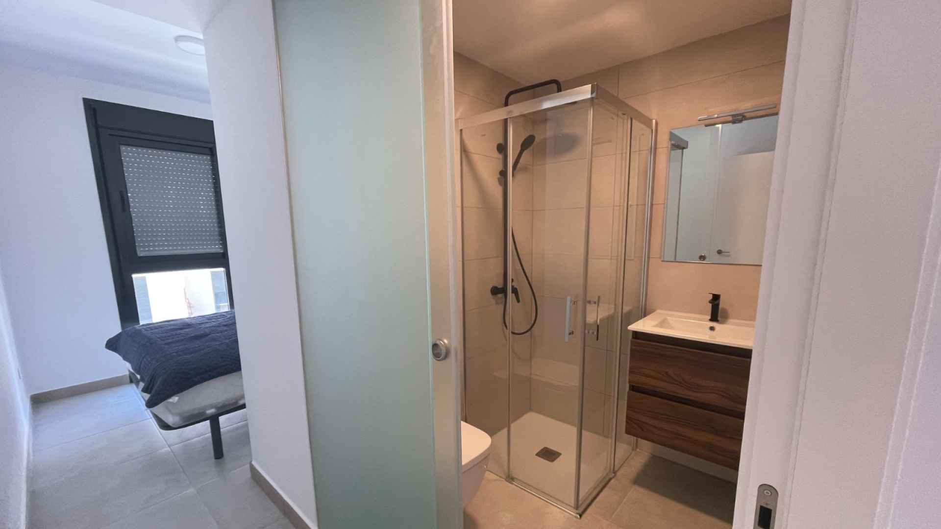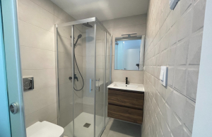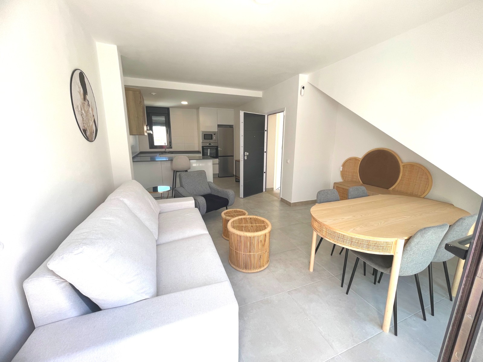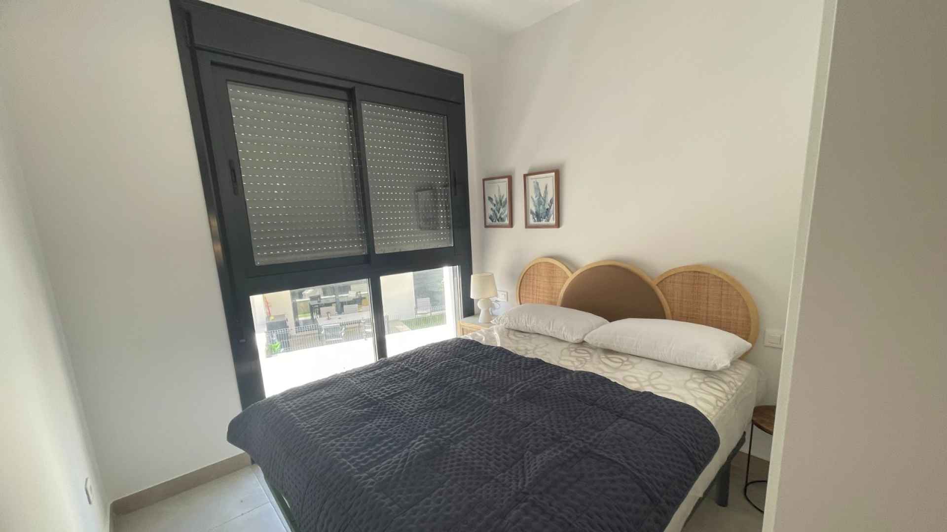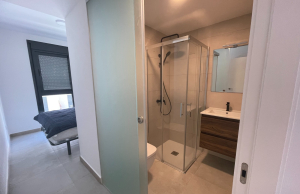 Built in 2023, this stylish first-floor apartment boasts a modern design and bright interior. The open-plan living area features double sliding doors leading out to a partly covered sun terrace with views over the beautifully laid out communal pool area. The spacious fitted kitchen which is open plan to the living room offers ample work and storage space along with a breakfast bar. There are also two double bedrooms, both with built-in wardrobes, and two sleek shower rooms with under floor heating, one of which is en-suite.