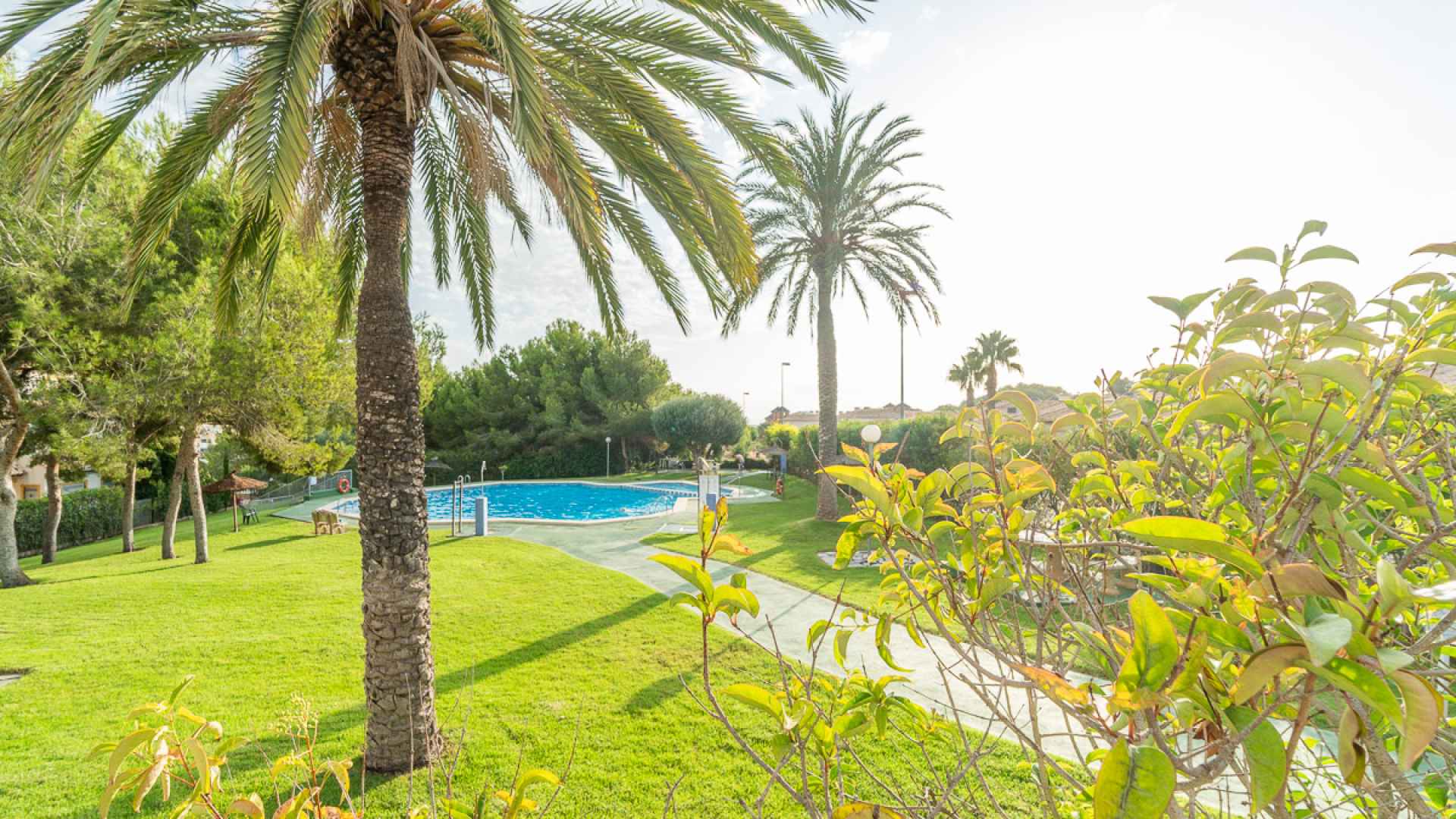 Villamartin is a very popular area on the Orihuela Costa with its own beautiful golf course and with the Las Ramblas and Campoamor courses just a short drive away. The lovely sandy beaches of the Orihuela Costa are also nearby, as are the holiday resorts such as Playa Flamenca, Punta Prima, Cabo Roig, La Zenia and Campoamor. Villamartin itself has many amenities such as shops, restaurants, bars, banks & supermarkets as well as the famous Villamartin Plaza with its many restaurants and bars set amongst tropical plants and Spanish tiling. Villamartin also has its own international school called El Limonar. Both Alicante and Corvera airports can be reached in a 45/50 minute drive.