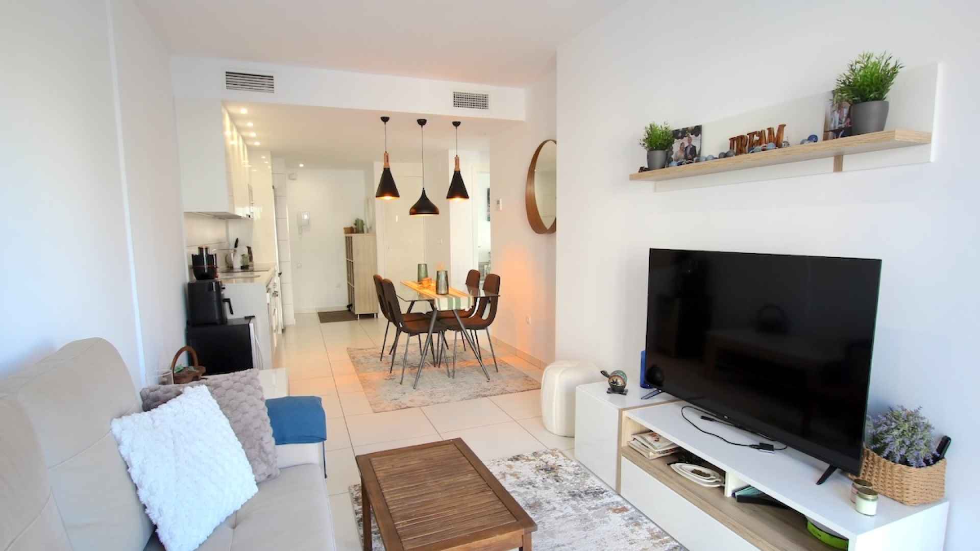 Discover modern Mediterranean living in this exceptional two-bedroom, two-bathroom second-floor apartment, perfectly positioned within the prestigious Valentino Golf I Development in Villamartin on the Costa Blanca South. Within this secure, gated community, residents can enjoy access to beautifully landscaped communal gardens, three sparkling swimming pools, a padel court, petanque courts, plus a dedicated children’s play area. Ideally situated less than a 15 minute walk to the famous Villamartin Plaza which boasts a huge array of lively bars and restaurants. Also within walking distance you have the lovely Villamartin clubhouse with its beautiful Spanish tiled sun terrace. Just a very short drive away you have the wonderful Zenia Boulevard shopping mall and the beautiful sandy beaches all along the Orihuela Costa resorts including; La Zenia, Cabo Roig, Punta Prima & Playa Flamenca. For the keen golfer as well as Villamartin you also have the courses of Campoamor, Las Ramblas & Las Colinas nearby and for family fun the wonderful Greenlands adventure golf is also close by.