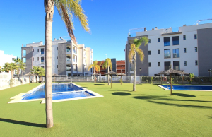 Villamartin is a very popular area on the Orihuela Costa with its own beautiful golf course and with the Las Ramblas and Campoamor courses just a short drive away. The lovely sandy beaches of the Orihuela Costa are also nearby, as are the holiday resorts such as Playa Flamenca, Punta Prima, Cabo Roig, La Zenia and Campoamor. Villamartin itself has many amenities such as shops, restaurants, bars, banks & supermarkets as well as the famous Villamartin Plaza with its many restaurants and bars set amongst tropical plants and Spanish tiling. Villamartin also has its own international school called El Limonar. Both Alicante and Corvera airports can be reached in a 45/50 minute drive.