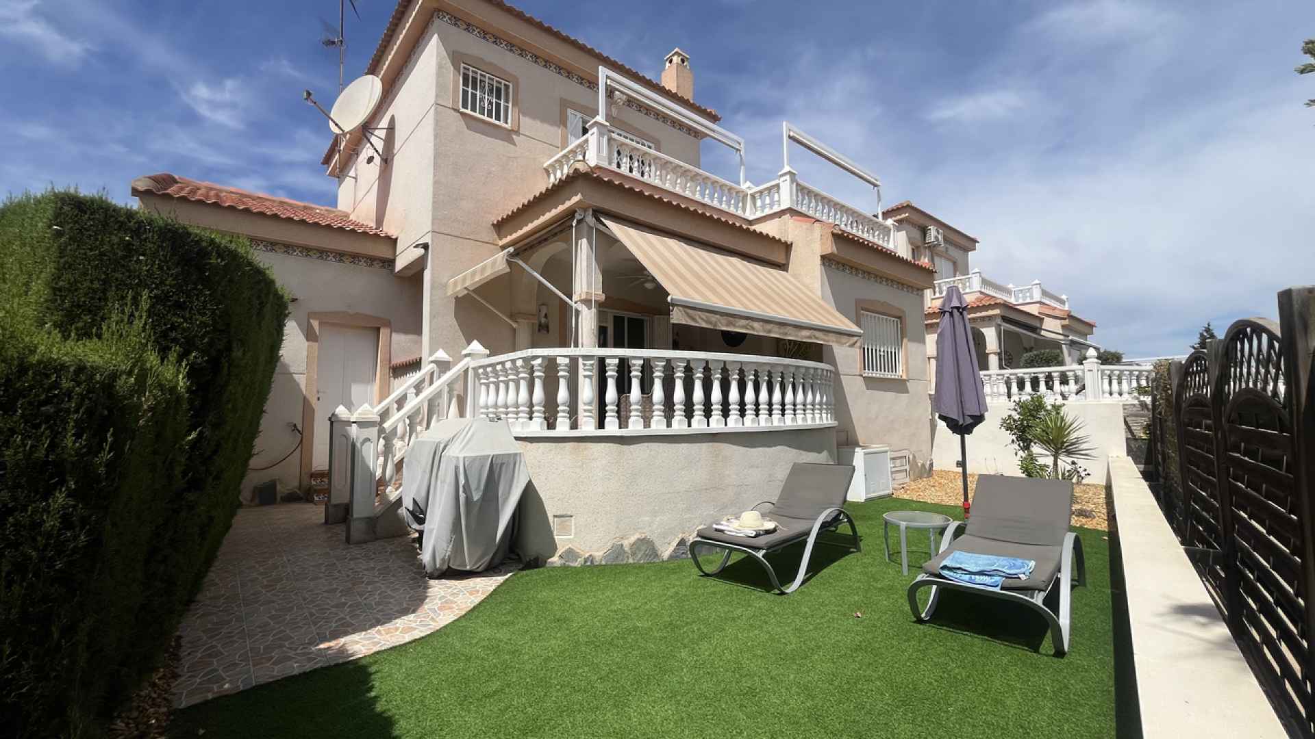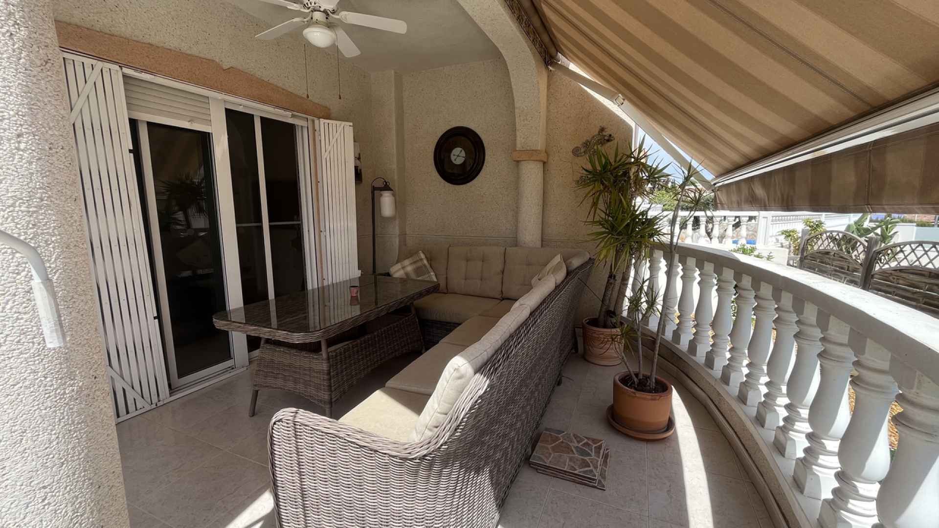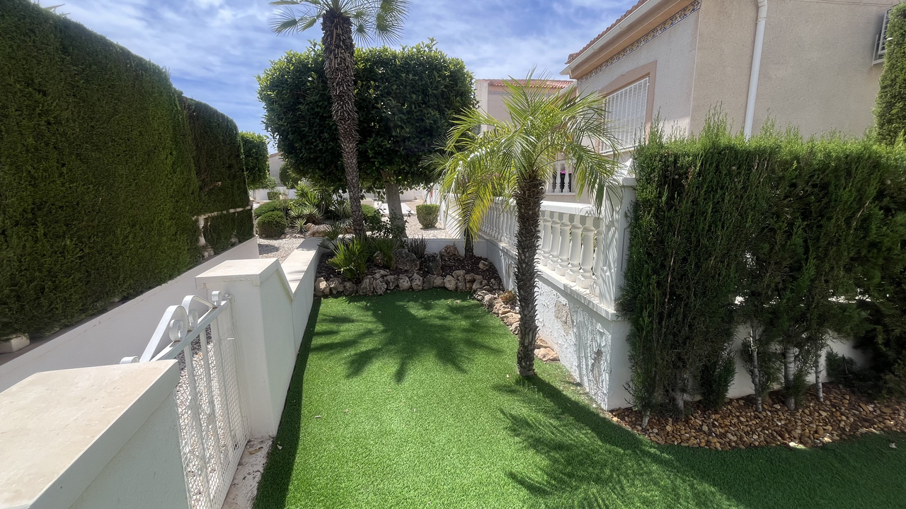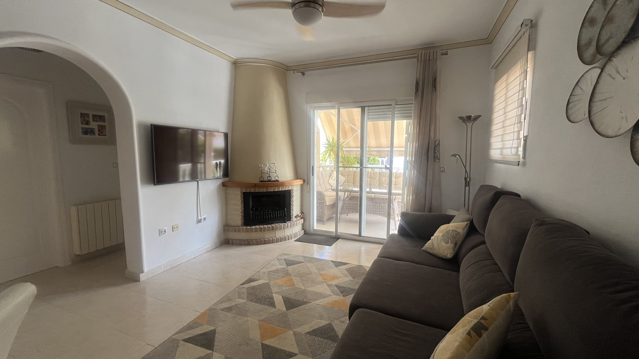 This Attractive & Spacious, three bedroom, two bathroom villa is located in Montemar, Algorfa on the Costa Blanca South. Siituated just across the road from the Famous 5* La Finca Golf Course Resort, with its own commercial centre which offers a wide variety of bars, restaurants and amenities, a 5* Hotel with Spa and Gym, plus the Clubhouse with views over the stunning Golf course where you can enjoy a lovely meal and drink. You are also just a short walk to the Algorfa Hotel which hosts live music and entertainment on a regular basis, as well as a traditional bakery and small convenience store.