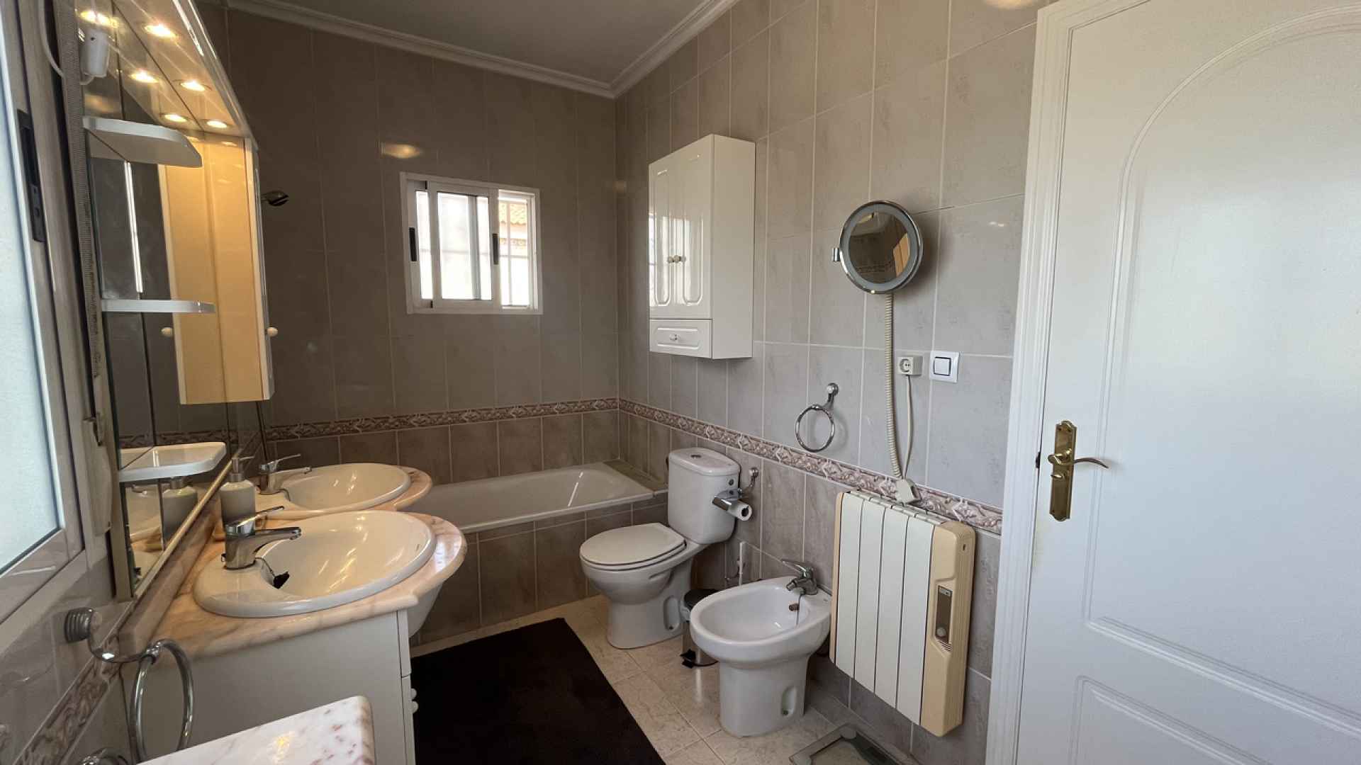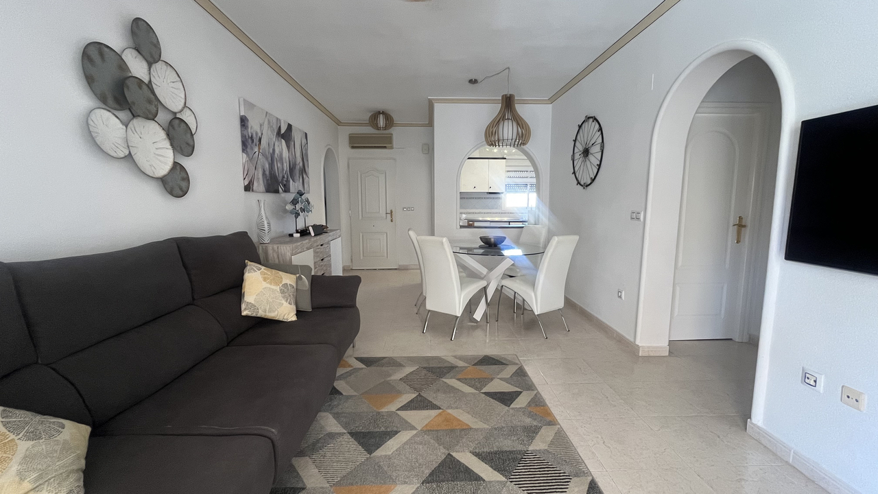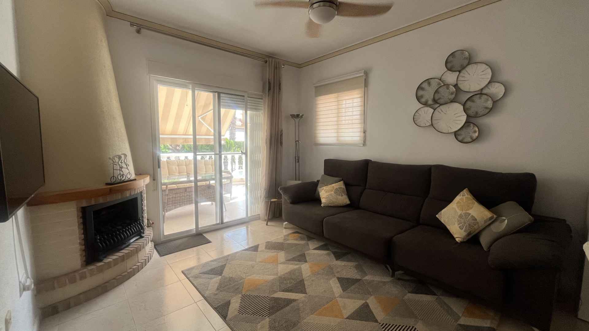 This Attractive & Spacious, three bedroom, two bathroom villa is located in Montemar, Algorfa on the Costa Blanca South. Siituated just across the road from the Famous 5* La Finca Golf Course Resort, with its own commercial centre which offers a wide variety of bars, restaurants and amenities, a 5* Hotel with Spa and Gym, plus the Clubhouse with views over the stunning Golf course where you can enjoy a lovely meal and drink. You are also just a short walk to the Algorfa Hotel which hosts live music and entertainment on a regular basis, as well as a traditional bakery and small convenience store.