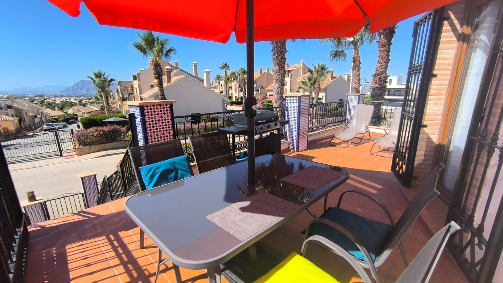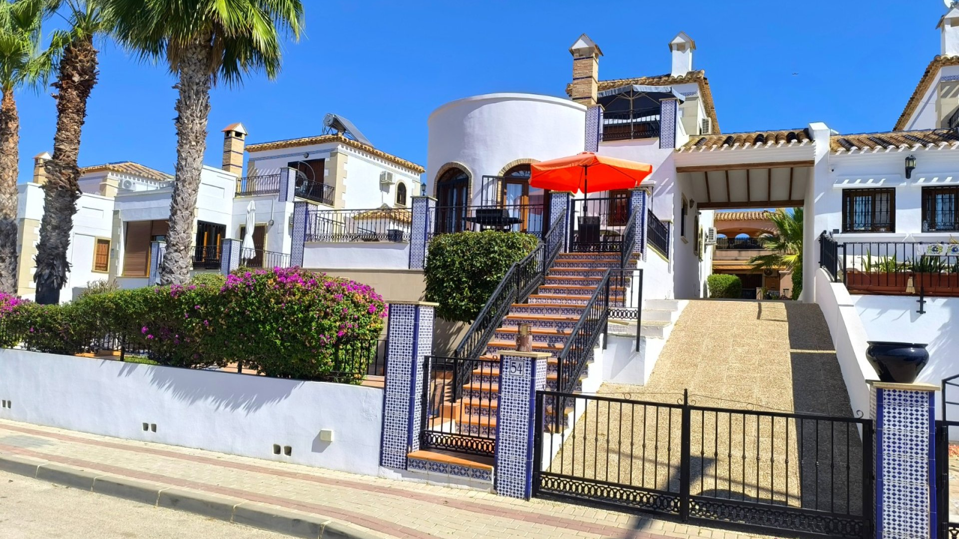 This Delightful, nicely maintained, three bedroom, two bathroom link-detached "Ibiza" style villa is located on the exclusive, luxurious golf and spa resort of La Finca, Algorfa on the Costa Blanca South. The property makes up part of an pretty and established multinational development which boasts a large feature communal swimming pool along with plenty of room for sunbeds. Nearby you will find a lovely choice of bars, restaurants & shops, plus also on the resort you will find a wonderful clubhouse and Spa hotel. The charming village of Algorfa is just a few minutes drive away and the wonderful award wining sandy beaches of Guardamar del Segura are less than a 20 minute drive away where you will find a great choice of amenities along with a wonderful promenade and Marina.