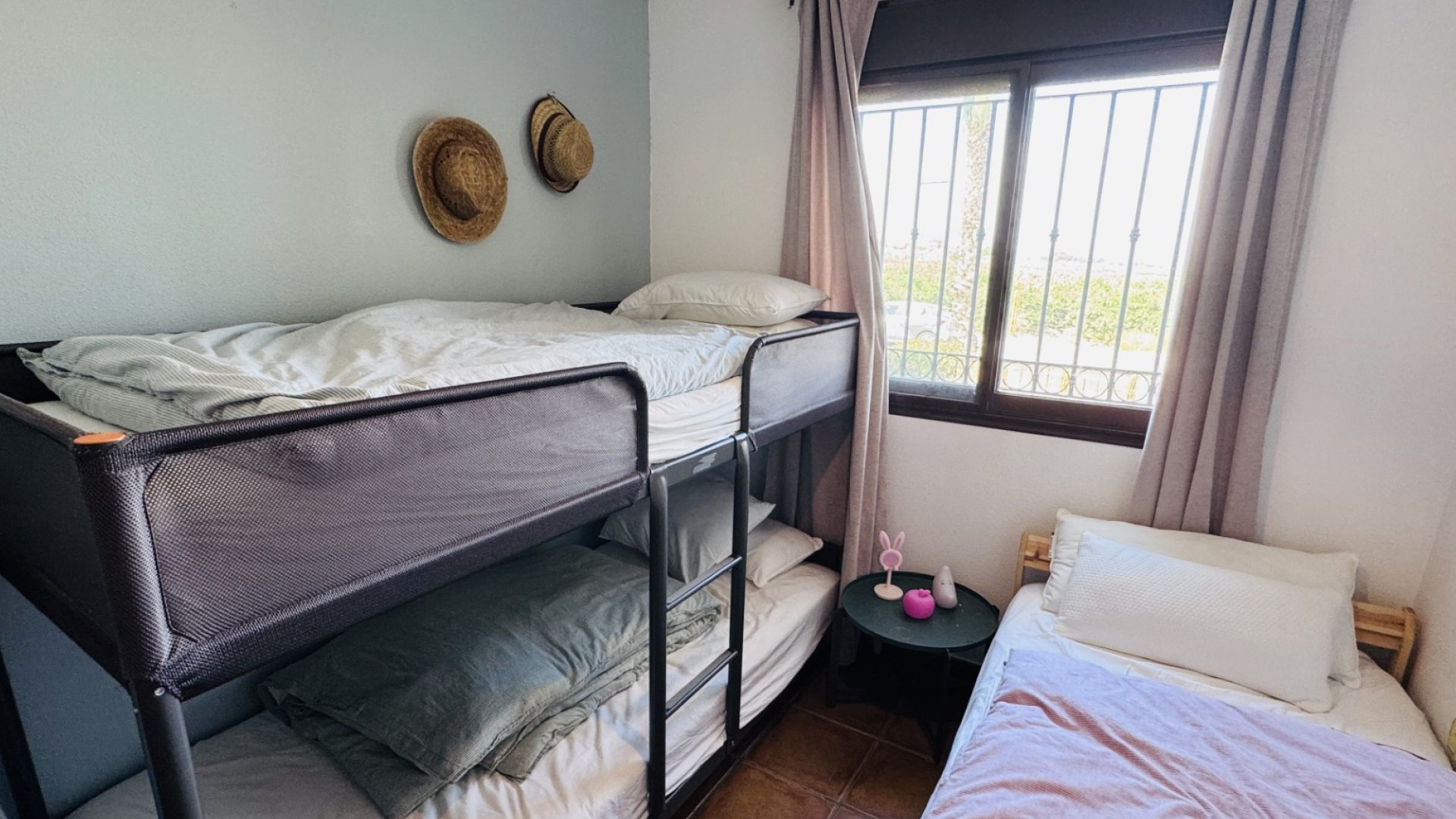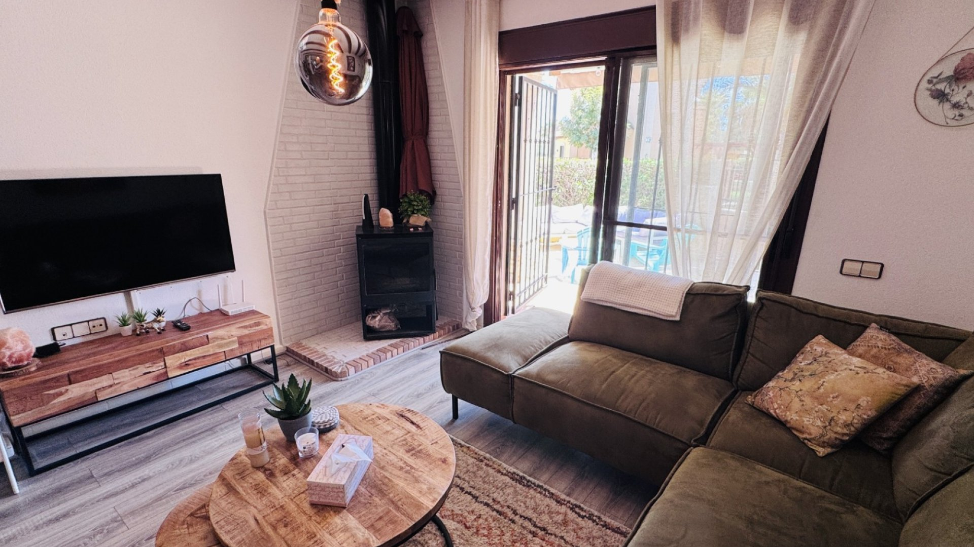 Externally the property sits on a larger plot and has various places to sit and relax, entertain with friends and family all whilst soaking up the Spanish sunshine! There is a gate from the garden which takes you to the lovely communal pool and gardens.