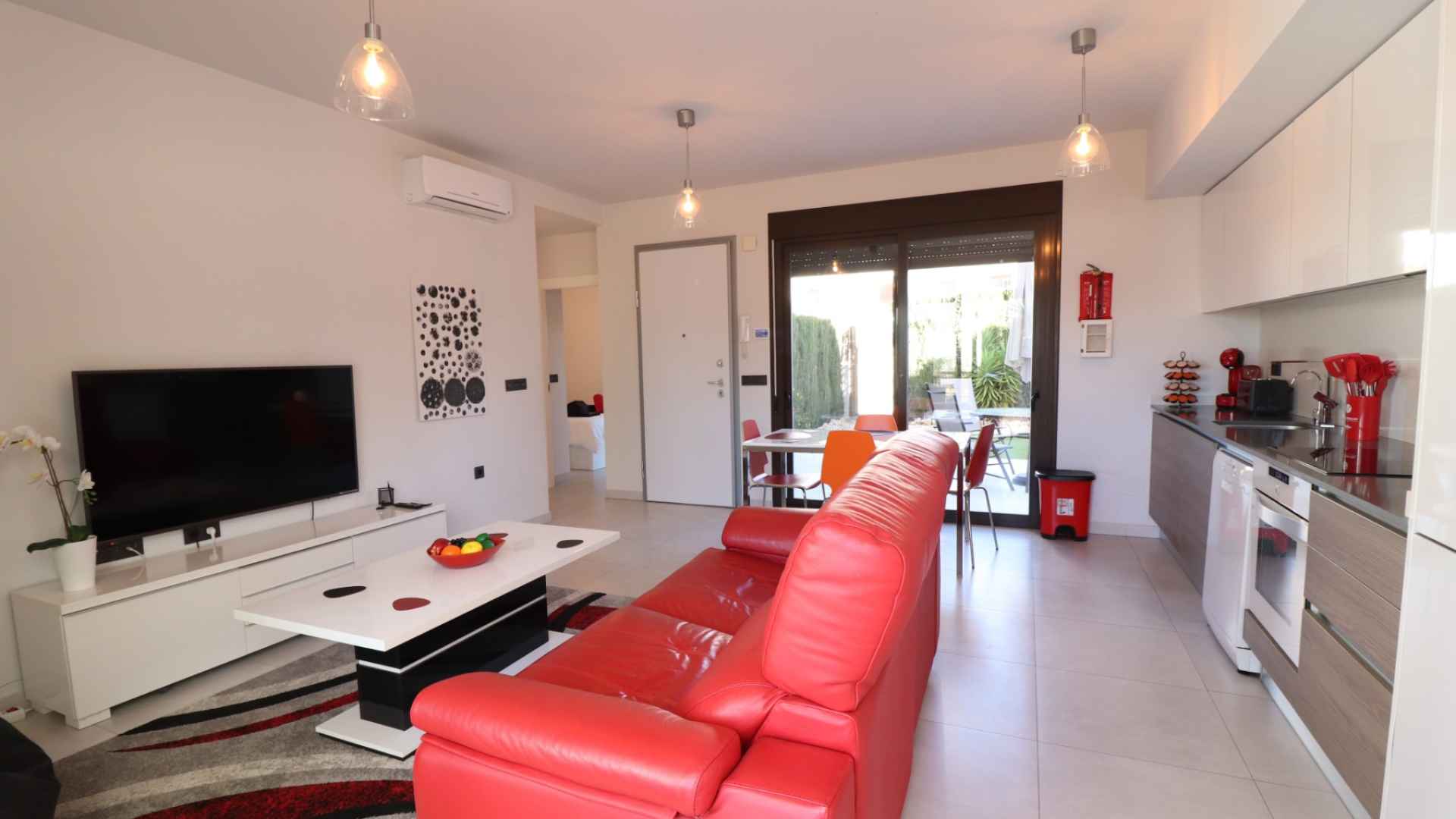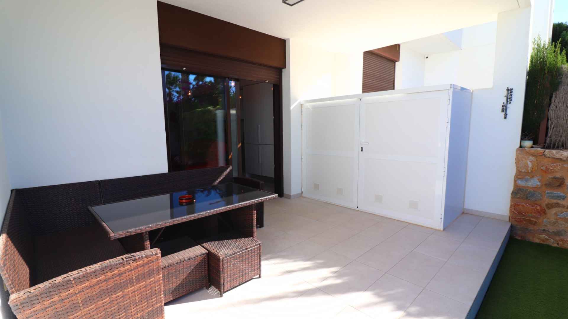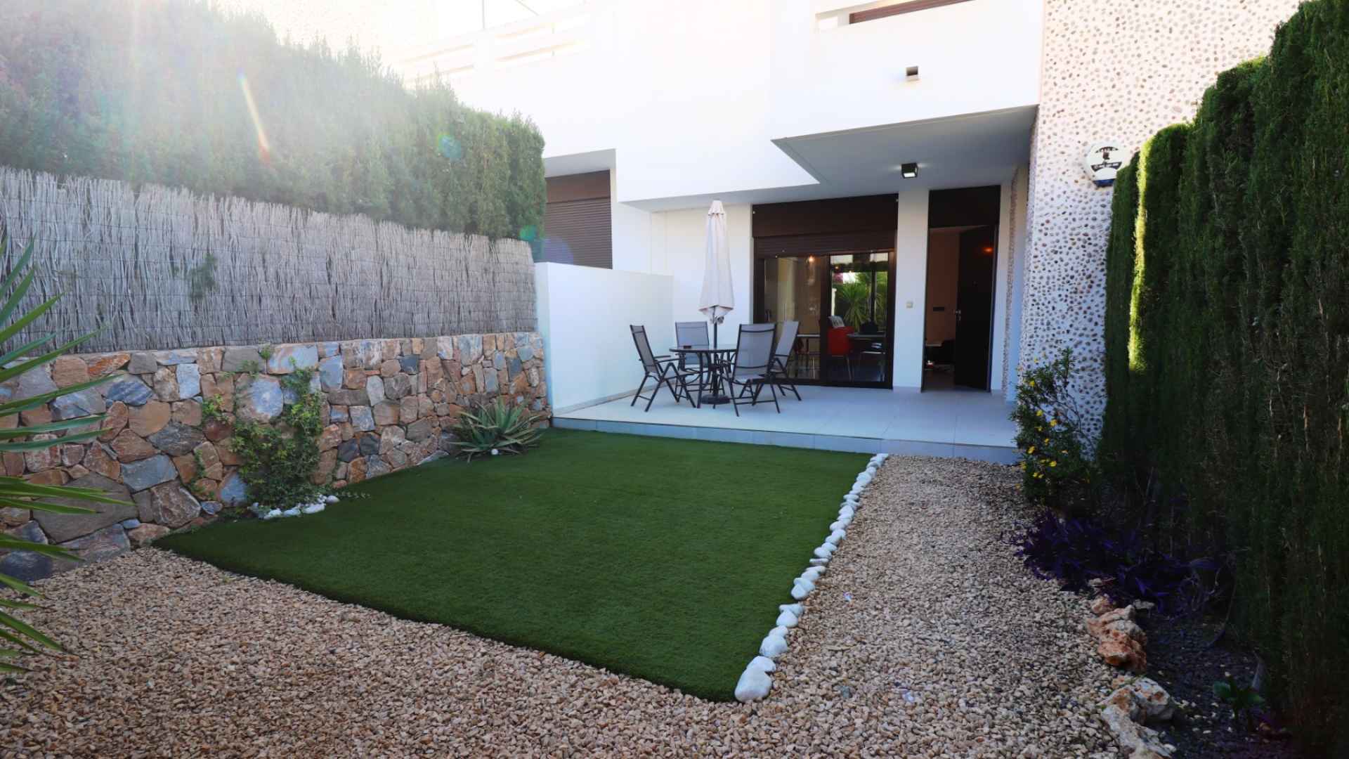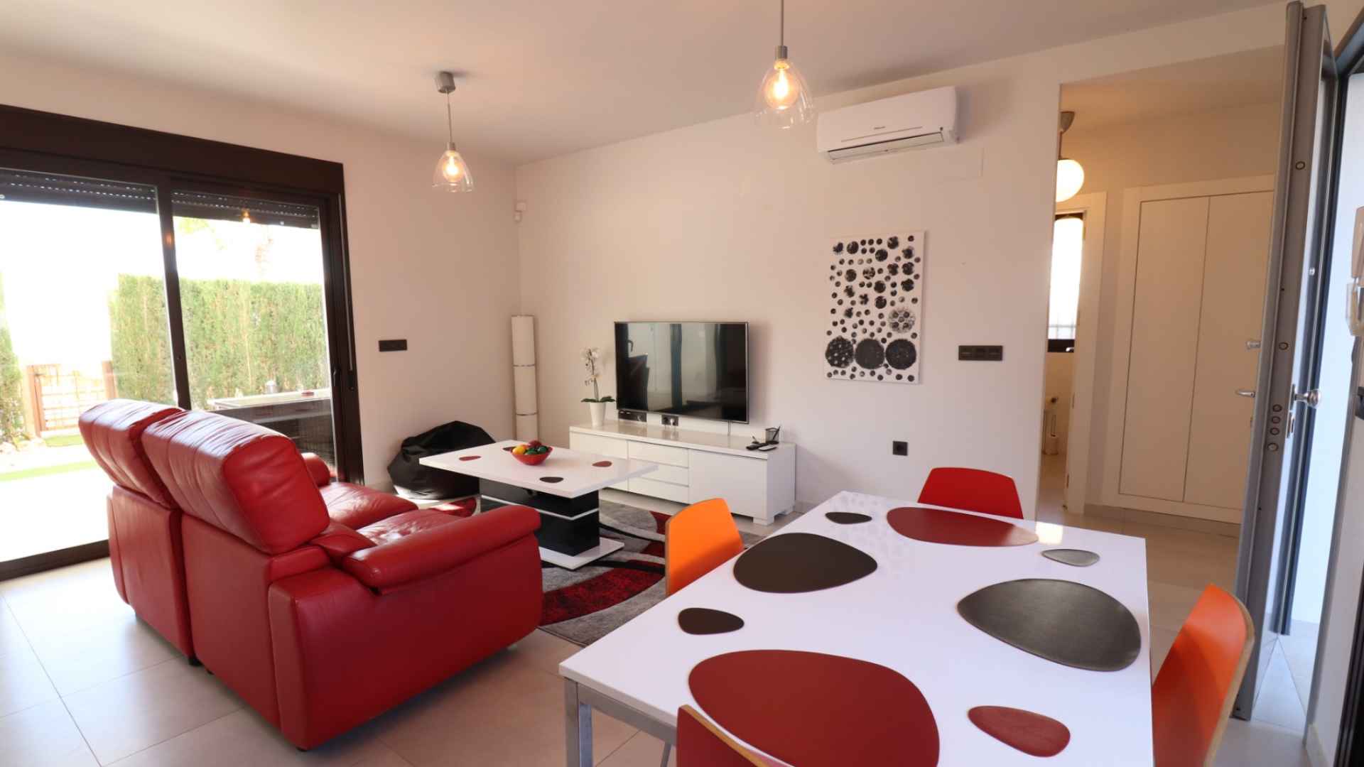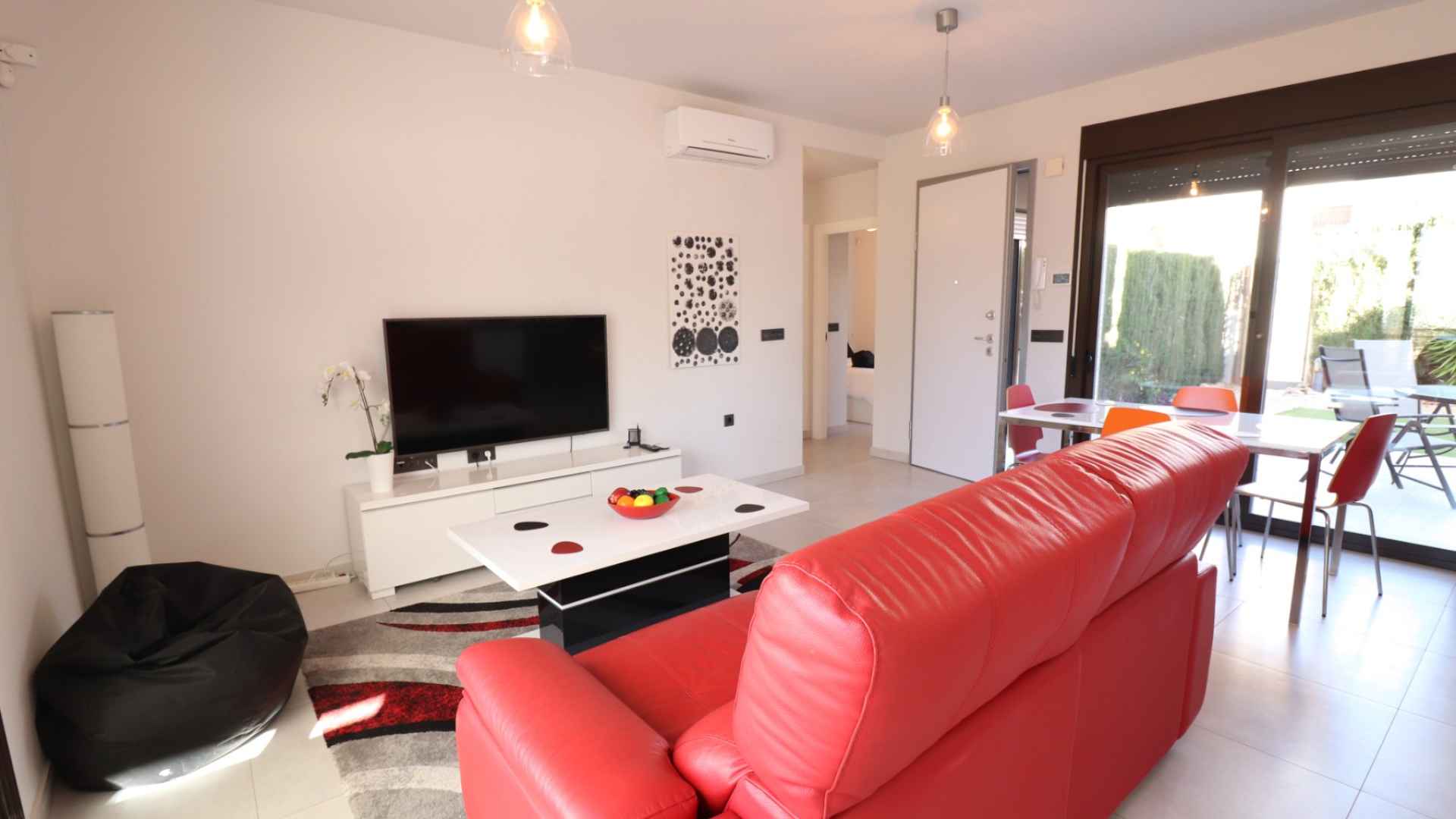 This Well presented, Fabulous, Modern style, 2 bedroom, 2 bathroom garden apartment is located on the prestigious 5* La Finca Golf, hotel and Spa resort, Algorfa on the Costa Blanca South. Situated on the delightful "Los Lagos" urbanisation with a terrific communal swimming pool and garden areas. Within walking distance of the property you have the prestigious La Finca Golf Spa Hotel which is open to non residents. The golf course club house has a lovely bar overlooking the course along with several other restaurants. The La Finca commercial centre is a short drive away and has a range of bar and restaurants to suit all tastes. The main motorway is around five minutes away and gives quick access to the cities of Elche and Alicante along with the airport in around 40 minutes. The nearest beaches can be found at Guardamar in less than a 15 minute drive.