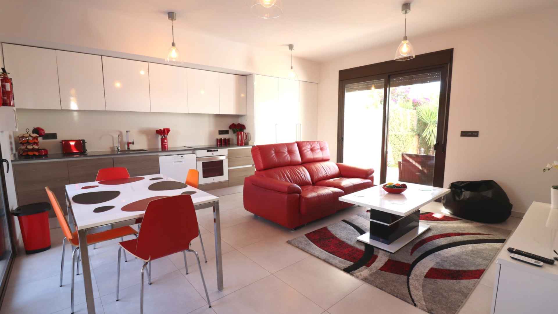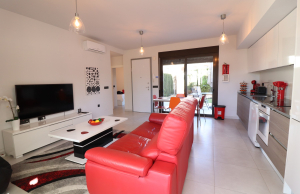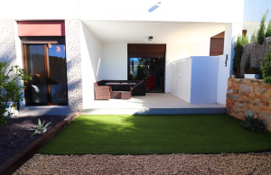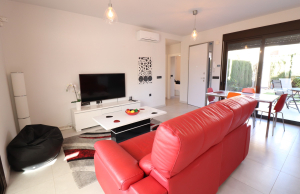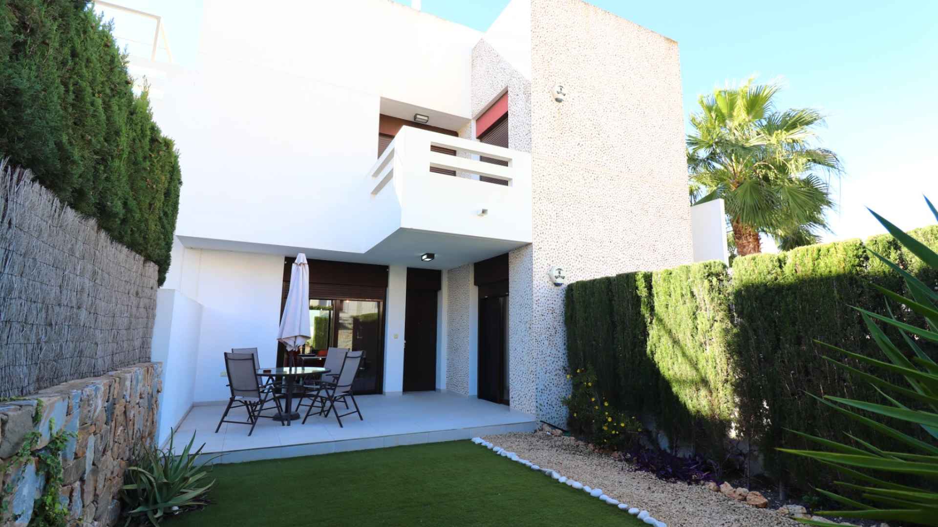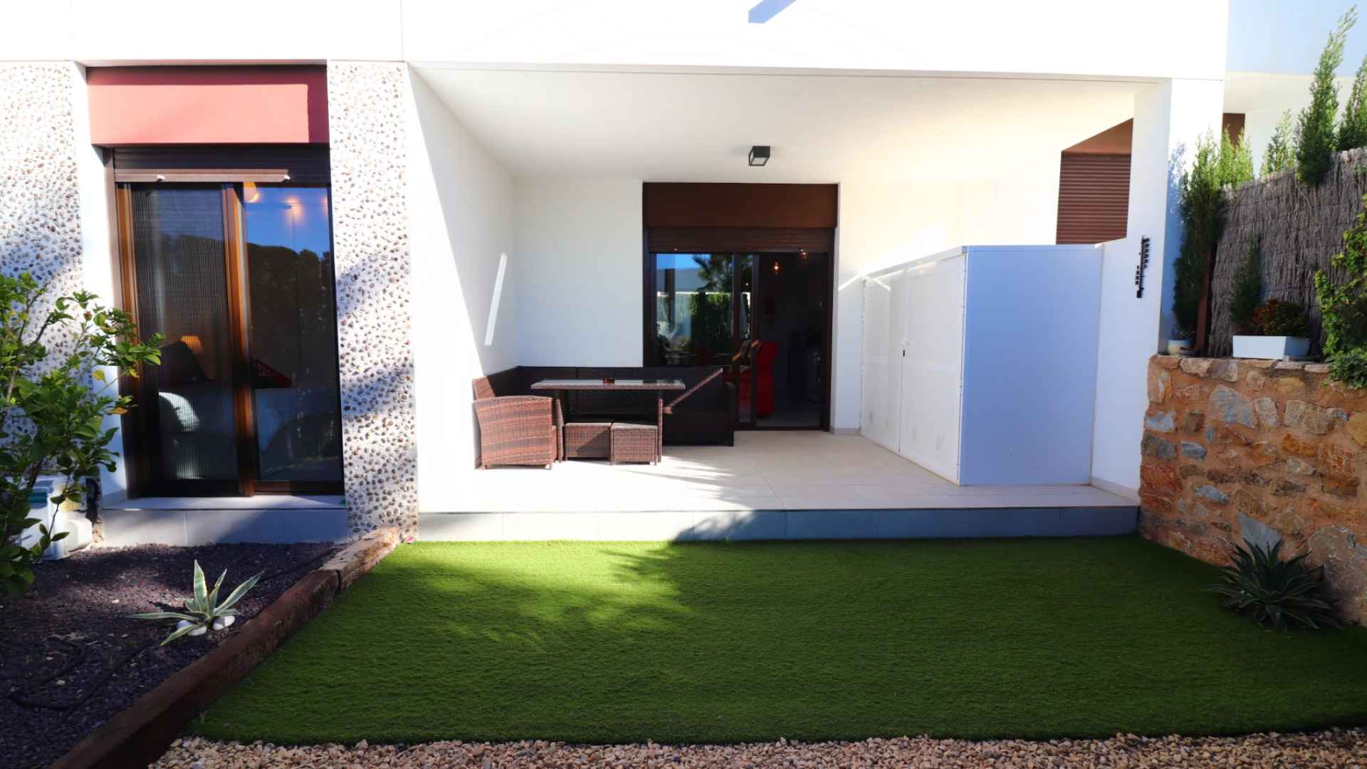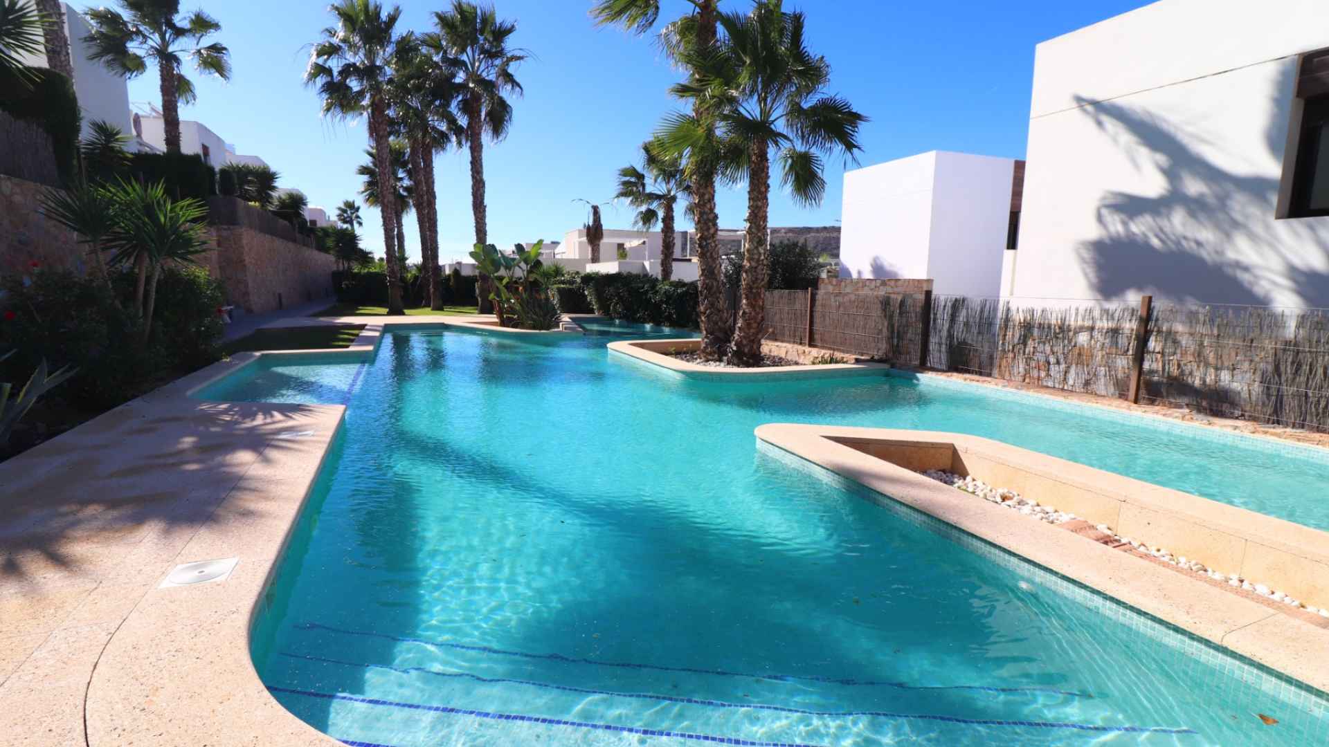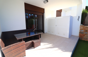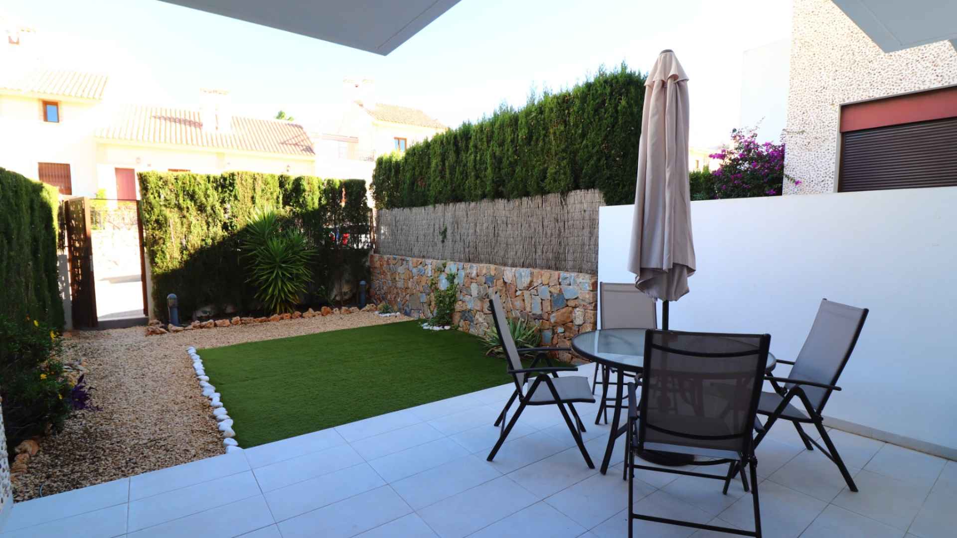 This Well presented, Fabulous, Modern style, 2 bedroom, 2 bathroom garden apartment is located on the prestigious 5* La Finca Golf, hotel and Spa resort, Algorfa on the Costa Blanca South. Situated on the delightful "Los Lagos" urbanisation with a terrific communal swimming pool and garden areas. Within walking distance of the property you have the prestigious La Finca Golf Spa Hotel which is open to non residents. The golf course club house has a lovely bar overlooking the course along with several other restaurants. The La Finca commercial centre is a short drive away and has a range of bar and restaurants to suit all tastes. The main motorway is around five minutes away and gives quick access to the cities of Elche and Alicante along with the airport in around 40 minutes. The nearest beaches can be found at Guardamar in less than a 15 minute drive.