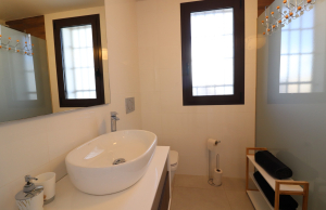Outside, you have a lovely front, partially covered sun terrace which looks out over a charming garden area with ample room for both lounging and dining furniture and sun loungers.