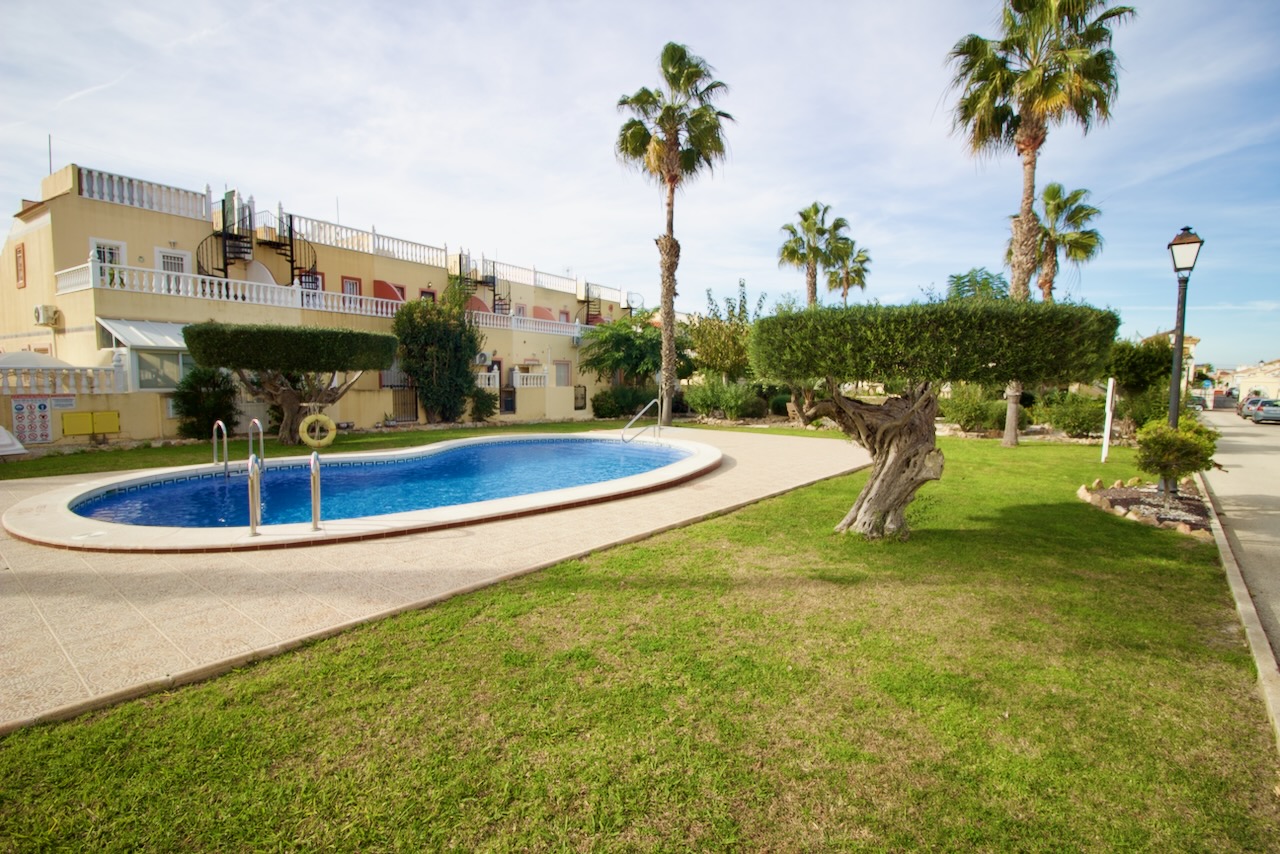 This popular style of property offers two levels of accommodation with the ground floor comprising of; a lovely, partially covered sun terrace which overlooks the garden, so the perfect spot to enjoy dining al fresco, a large lounge/diner, a separate fully fitted kitchen which leads out to the rear terrace where you will find a handy utility area/storage room, plus direct access out to the fabulous communal pool and garden areas. Completing the accommodation on this level you have one double bedroom, plus there is a downstairs wc/cloakroom.