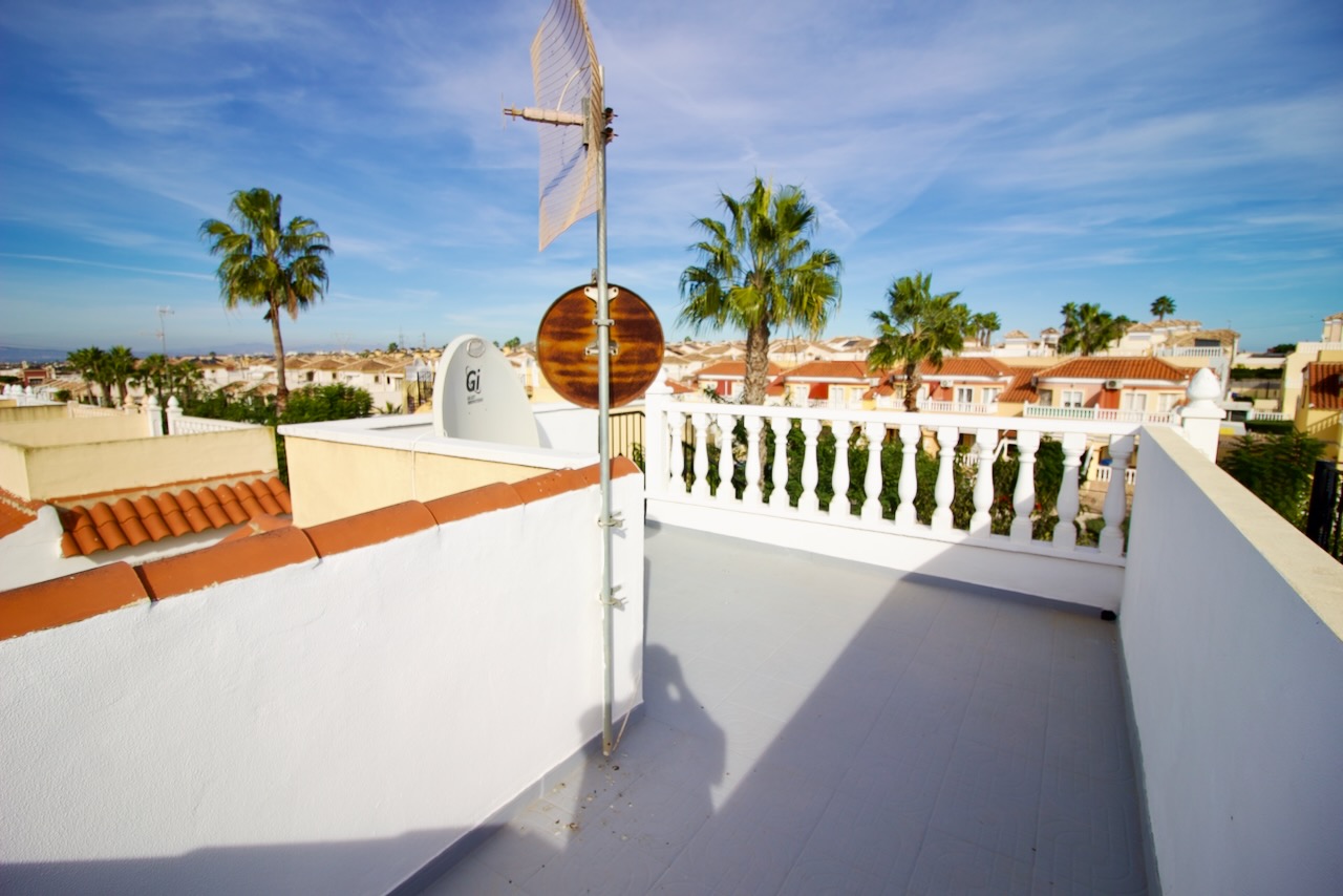 This Attractive and very nicely presented, three bedroom semi-detached villa is located in Lo Crispin, a popular quiet residential urbanisation which comes under the area of Algorfa yet is closer to the very popular town of Ciudad Quesada on the Costa Blanca South. Lo Crispin has its own commercial centre where you will find some lovely local amenities including; a mini supermarket, cafe, hairdressers & beauty salon, plus a bar. The urbanisation also has a very popular tavern where there is a lovely pub garden and plenty of entertainment, plus several lovely parks and a lake. Just a short drive away or a 15/20 minute walk along the pedestrian path will take you into the very popular town of Ciudad Quesada with a huge array of amenities including; restaurants, bars, cafes, shops, banks, shopping boulevards, La Marquesa golf course, a family Aqua park and much much more. The award winning sandy beaches of Guardamar del Segura are less than a 15 minute drive away where you can enjoy a walk along the promenade or around the lovely Marina.