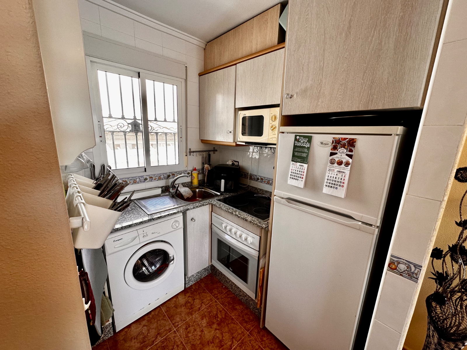 This nicely maintained, two bedroom, ground floor apartment is located on the sought after urbanisation of Montemar Algorfa on the Costa Blanca South. The urb is situated just across the road from the Famous 5* La Finca Golf Course Resort, with its own commercial centre which offers a wide variety of bars, restaurants and amenities, a 5* Hotel with Spa and Gym, plus the Clubhouse with views over the stunning Golf course where you can enjoy a lovely meal and drink. You are also just a short walk to the Algorfa Hotel which hosts live music and entertainment on a regular basis, as well as a traditional bakery and small convenience store. A 15/20 minutes drive will take you to the beautiful sandy beaches of Guardamar del Segura.