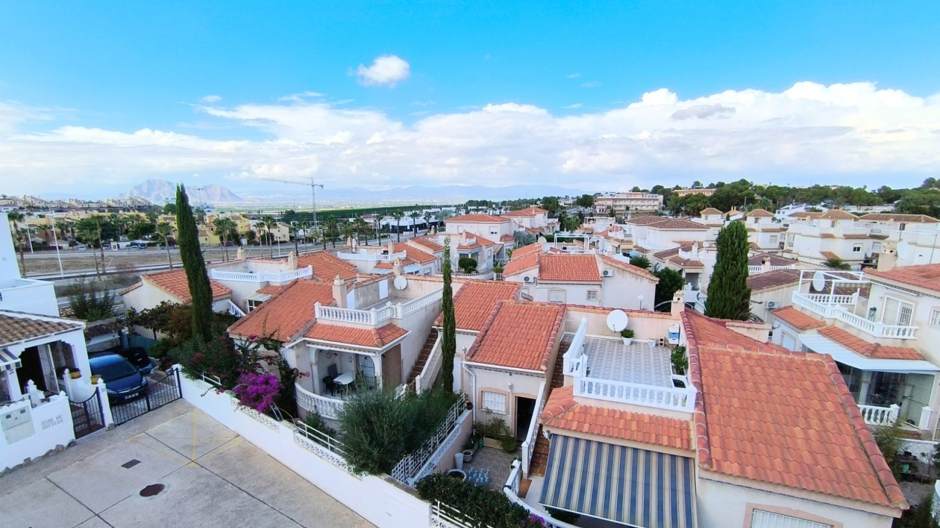 This Spacious and nicely maintained, three bedroom, two bathroom, semi-detached, end townhouse is located in the popular Montemar development of Algorfa on the Costa Blanca South. You can easily walk to the renowned 5-star La Finca Golf Resort in around 15 minutes, where you’ll find an 18-hole golf course, a hotel and spa complex, alongside a large commercial centre at the entrance with a choice of bars and eateries. The popular Algorfa hotel is also within walking distance where you can enjoy a coffee, a meal or even a show. The nearest stunning sandy beaches of Guardamar del Segura can be reached in a 20 minute drive.